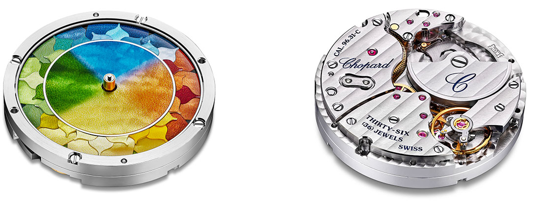 Калибр L.U.C 96.31-C обеспечивает энергию, необходимую для обновления стильной картинки. Этот механизм с автоподзаводом также имеет 65-часовой запас хода для стабильной работы хронометра. Его автономность гарантируется двумя барабанами, накапливающими энергию от движения руки с часами. Детали калибра помещены в корпус из благородного белого золота диаметром 36 мм и толщиной 12,1 мм.