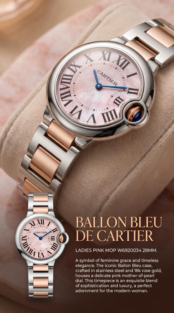 Cartier до 1 млн. руб. до 500 т. руб. Женские часыBallon Bleu de Cartier Ladies Pink MOPЗолото розовое Сталь595 000₽