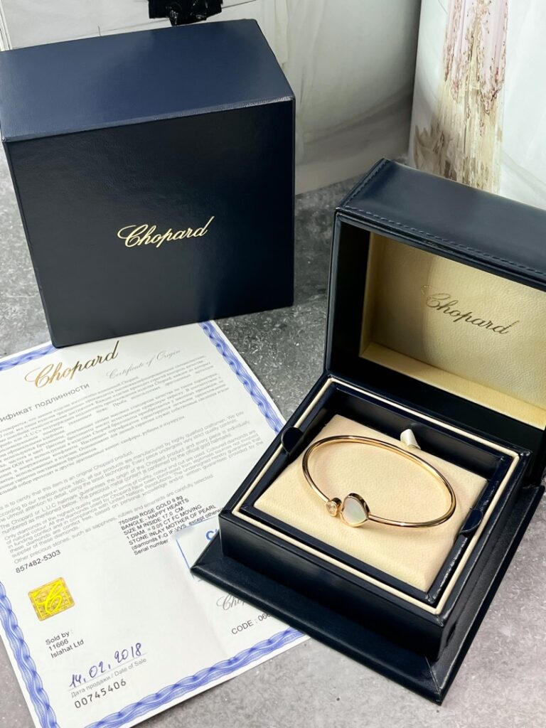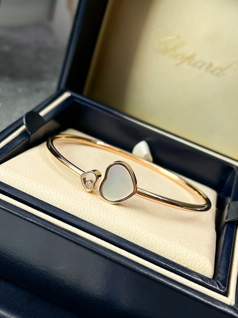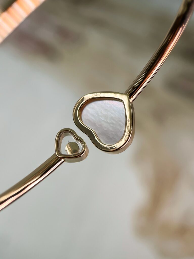 - Изысканный браслет Chopard Happy Hearts, выполненный из благородного розового золота 750 пробы, – это воплощение элегантности и утонченности. В сердце этого украшения – нежная вставка из натурального перламутра, переливающегося мягкими пастельными оттенками.