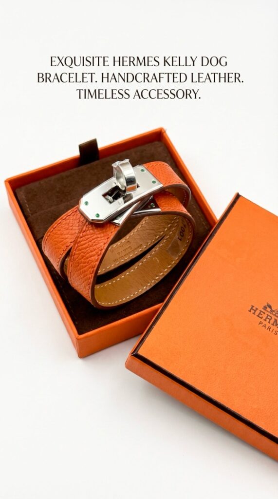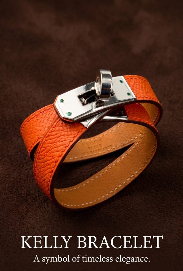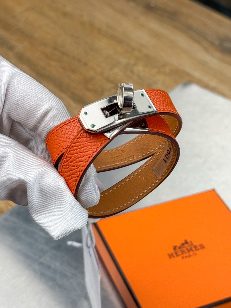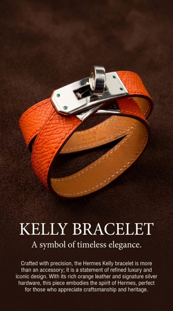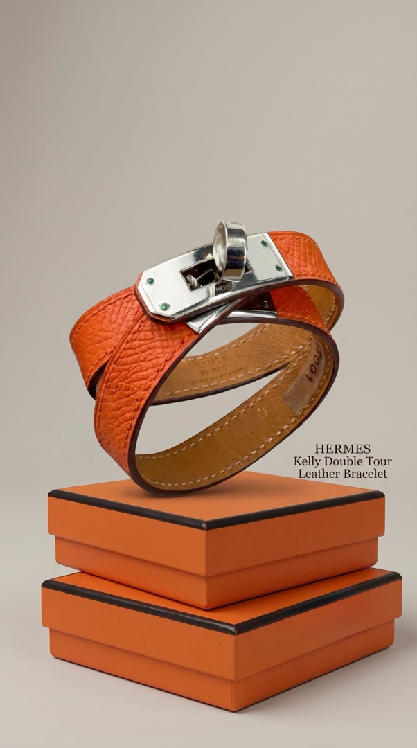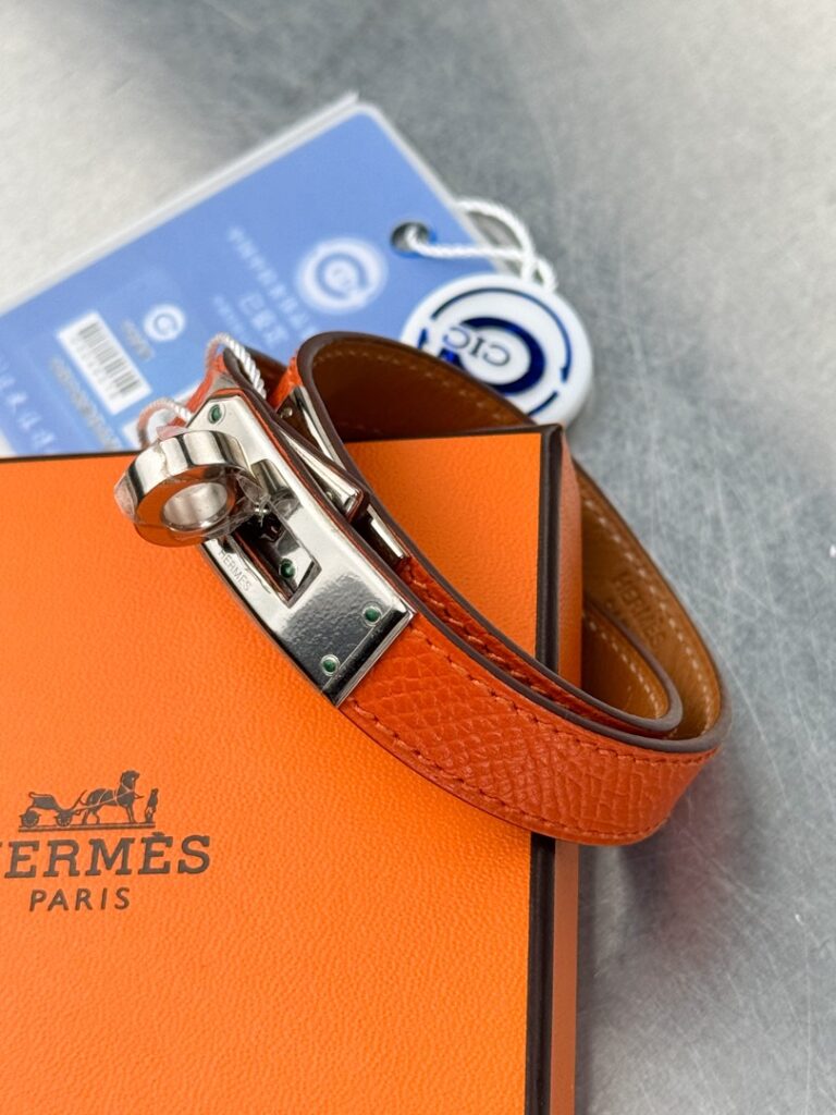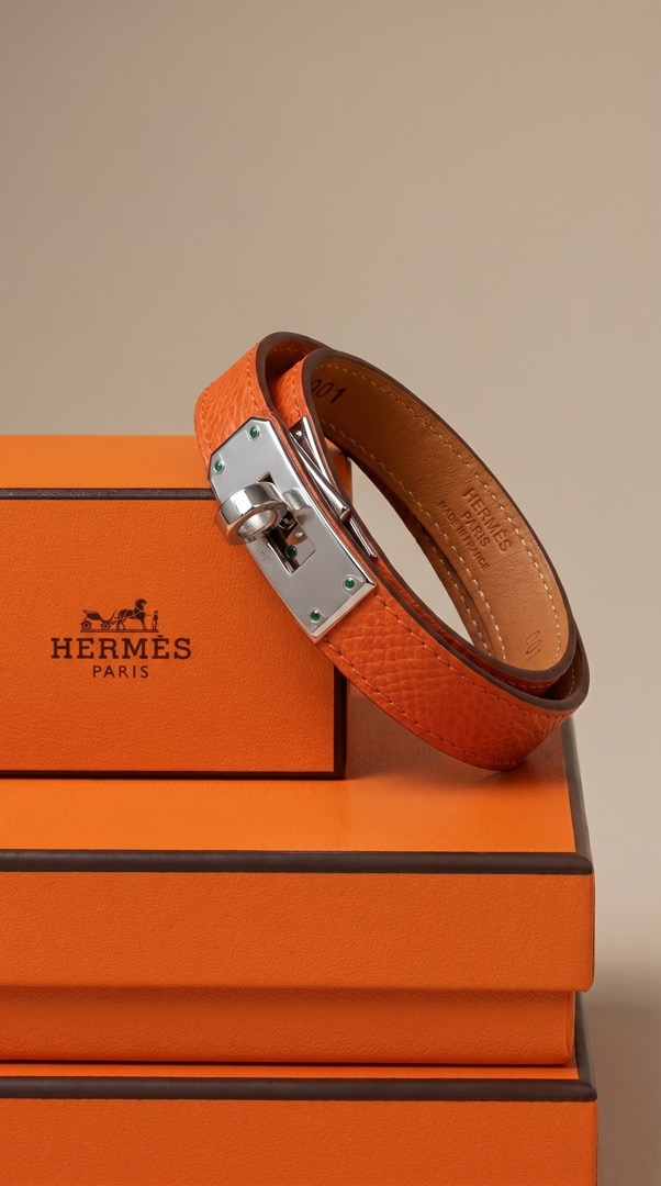 - Браслет выполнен в эстетике культовой линии Hermès с фирменной поворотной застёжкой Kelly — элементом, вдохновлённым замками легендарных сумок бренда. Дизайн сочетает минимализм и архитектурную чёткость форм, подчеркивая статус и утончённый вкус владельца.