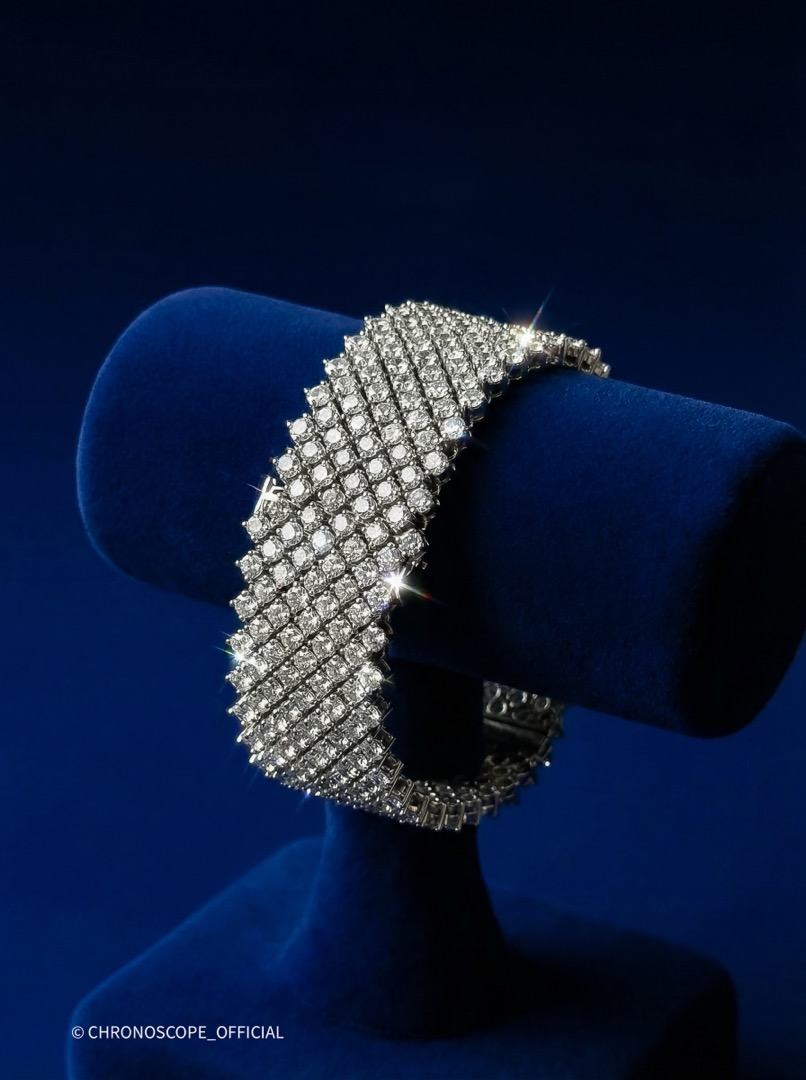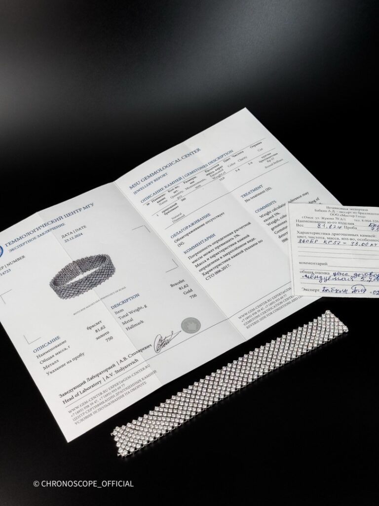 - Редкое сочетание крупного бриллиантового каратника, благородного металла и сложной ручной работы делает этот браслет не только предметом роскоши, но и надёжным вложение в ценность, актуальную вне времени и моды.