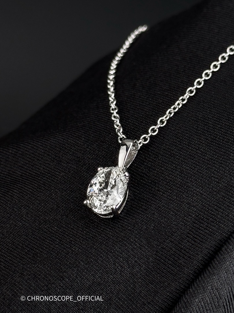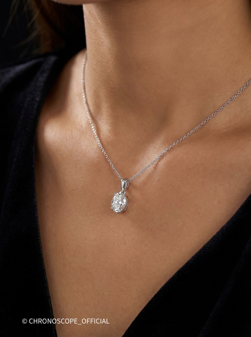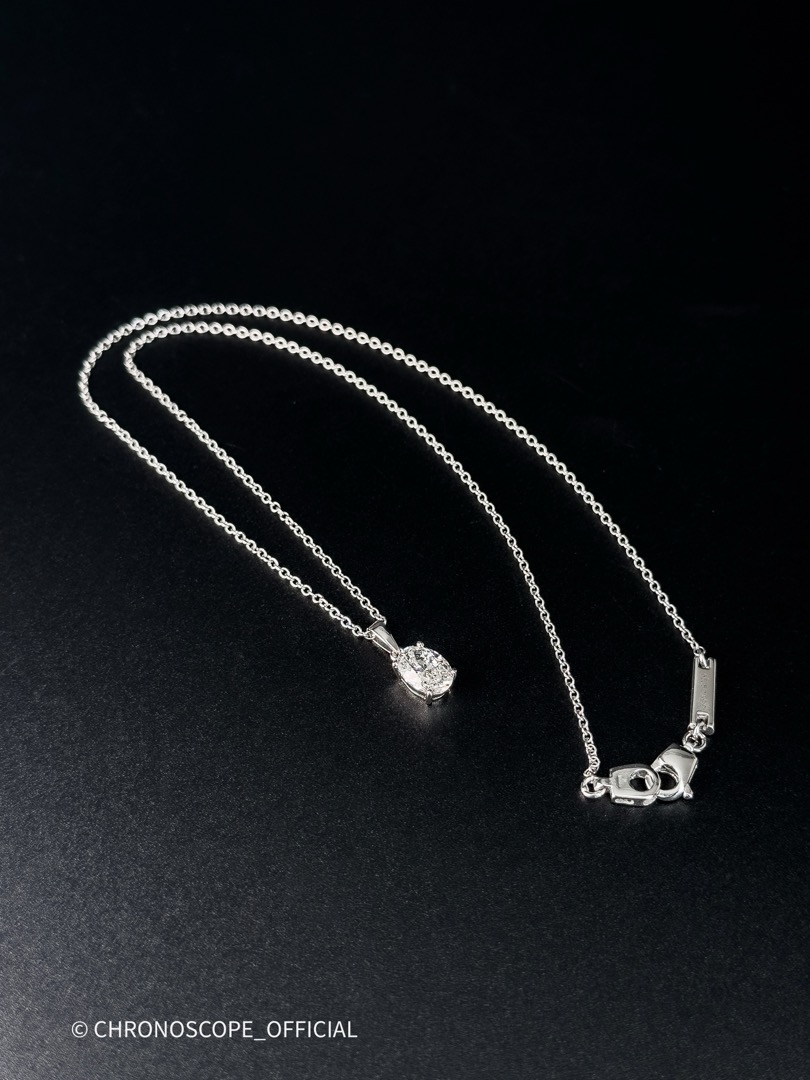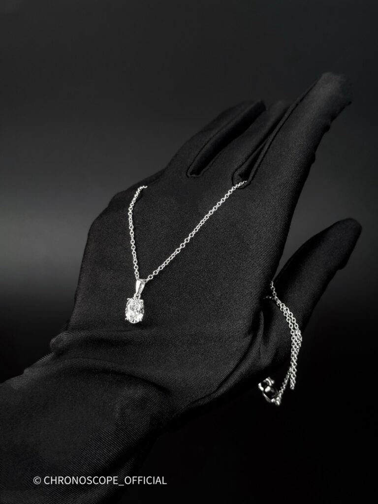 - Цепочка длиной 44 см, выполненная также из белого золота, деликатно обрамляет шею, позволяя кулону занять центральное место и приковывать к себе восхищенные взгляды.