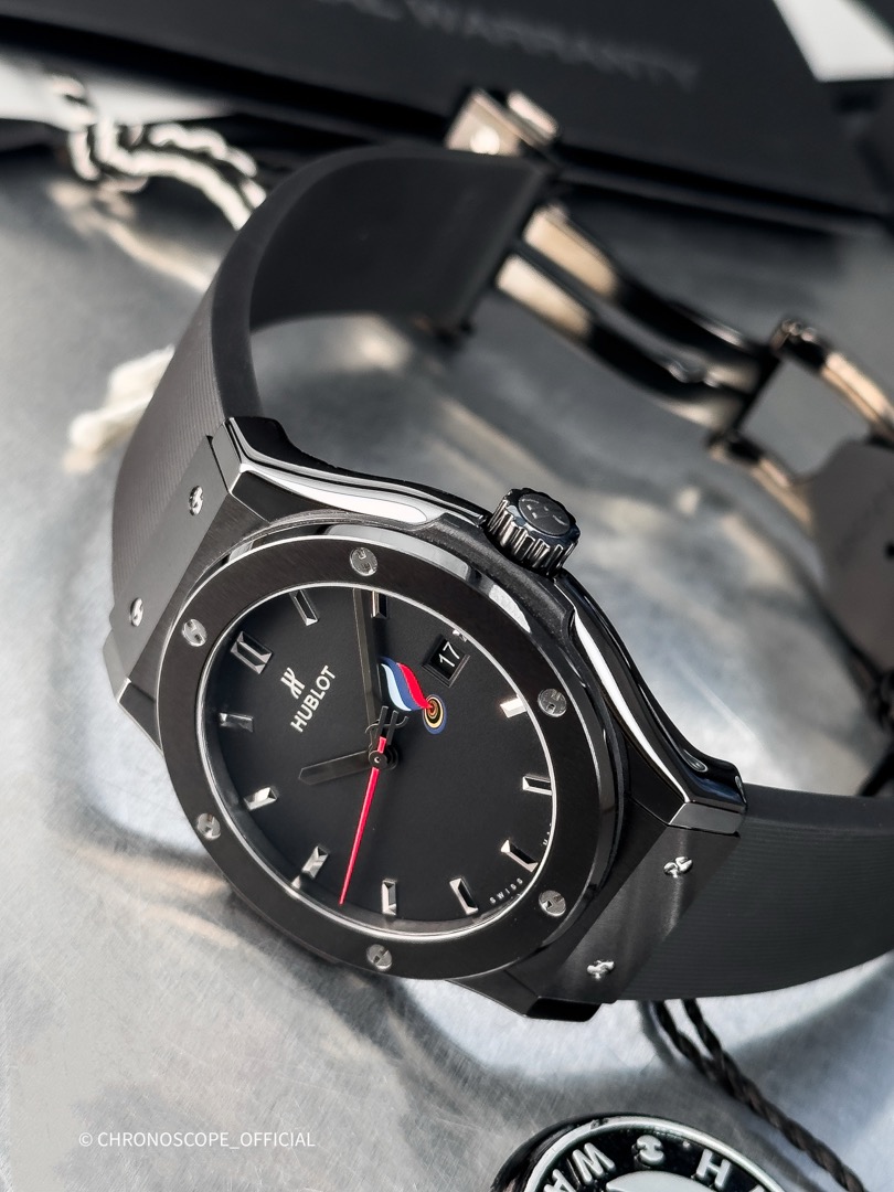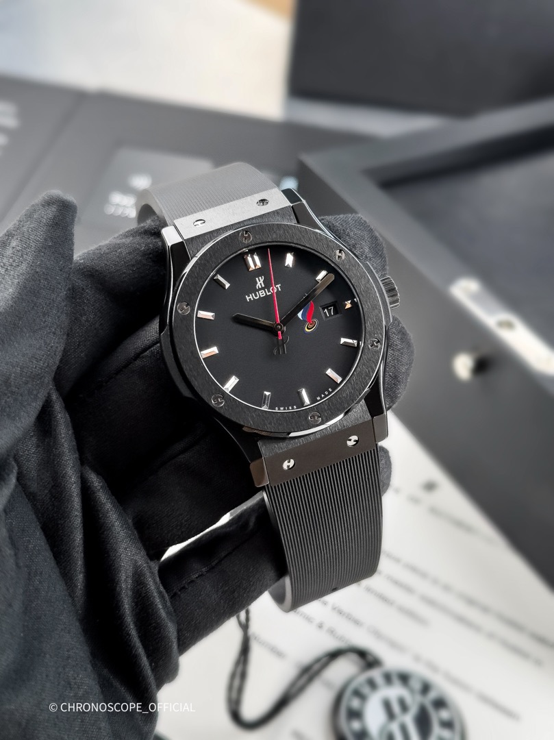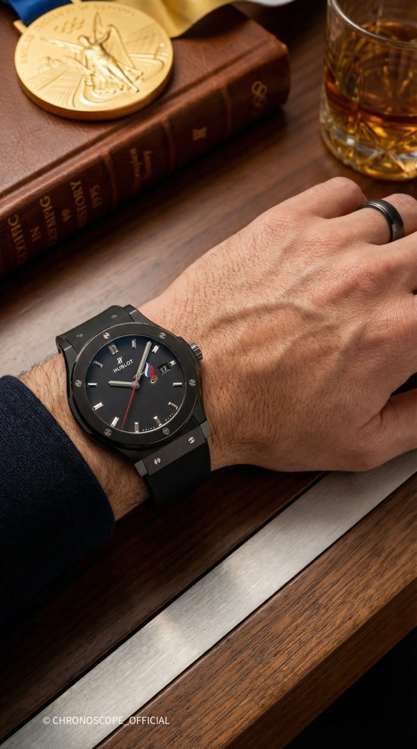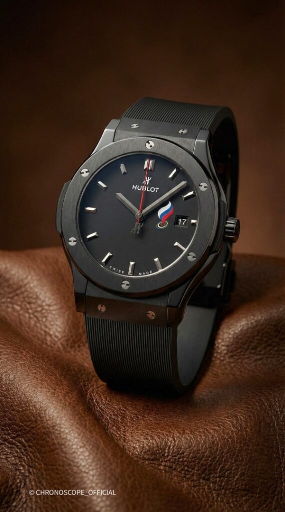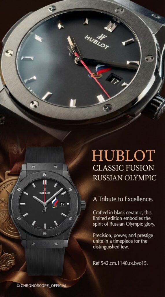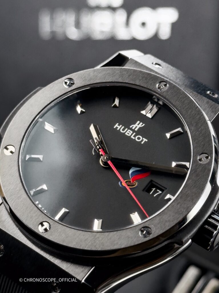 Эксклюзивная серия часов Hublot Classic Fusion Summer Olympic Sport Association Russian Edition, посвященная Всероссийской Ассоциации Летних Олимпийских Видов Спорта – ВАЛОВС. В корпусе 42мм из черной керамики.