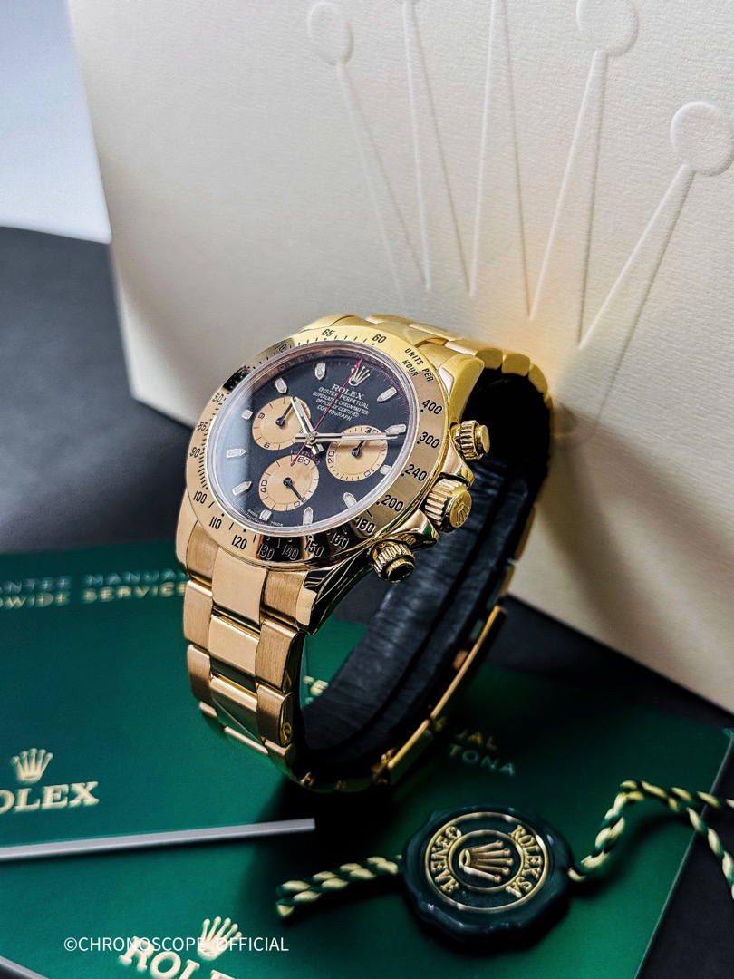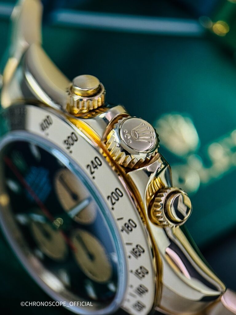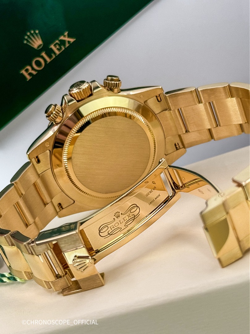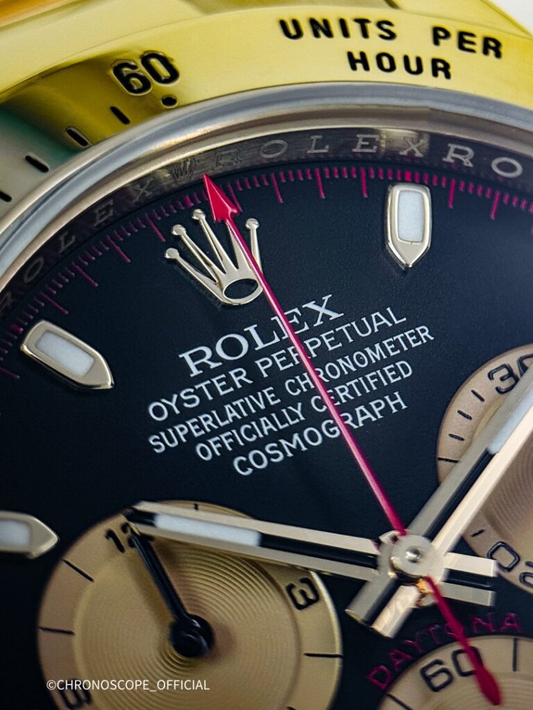 Статусность и культовость данных часов уже давно является аксиомой. Самая известная Daytona Paul Newman в цельном золотом корпусе, привинчиваемые задняя крышка и заводная головка, фиксированный безель с тахиметрической шкалой, браслет и пряжка, все это выполнено из 18-каратного желтого золота.
