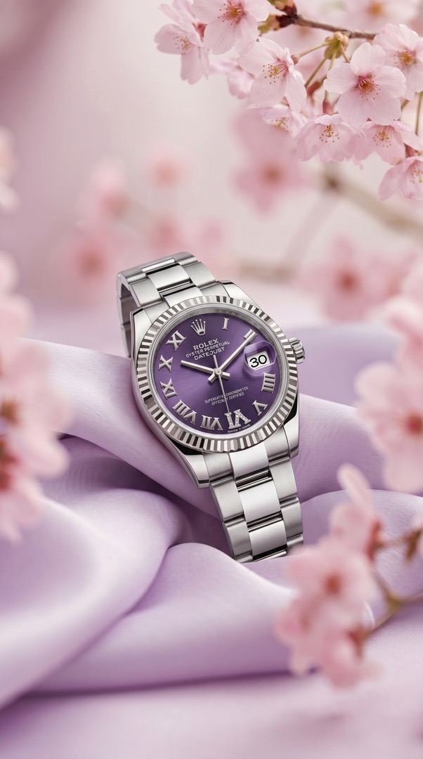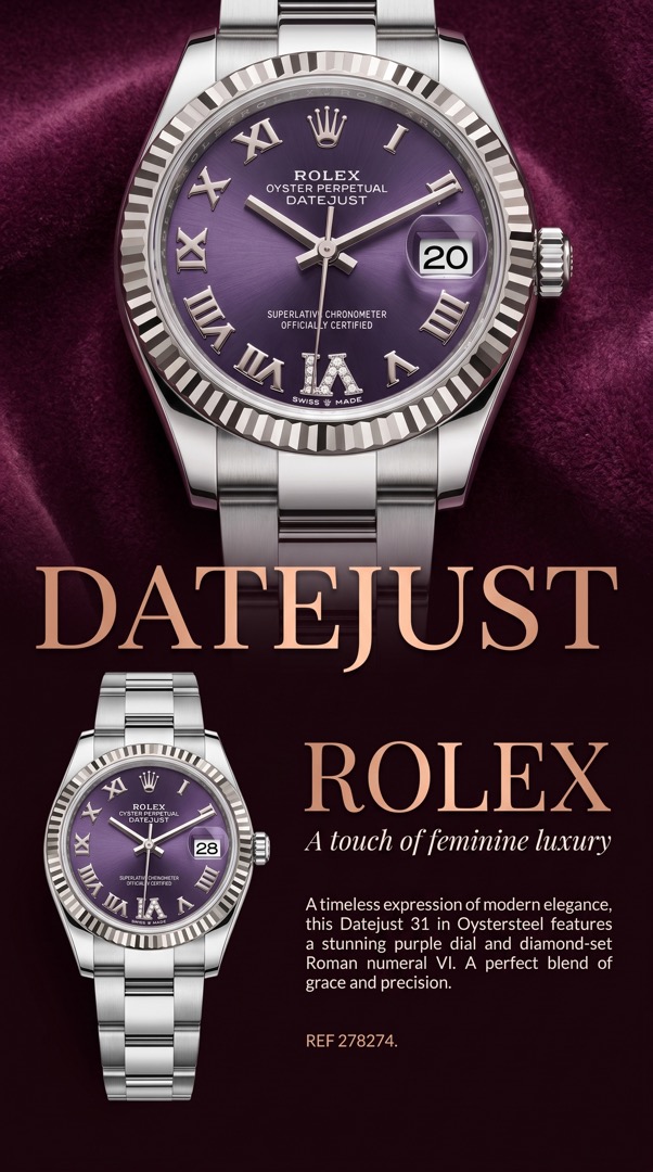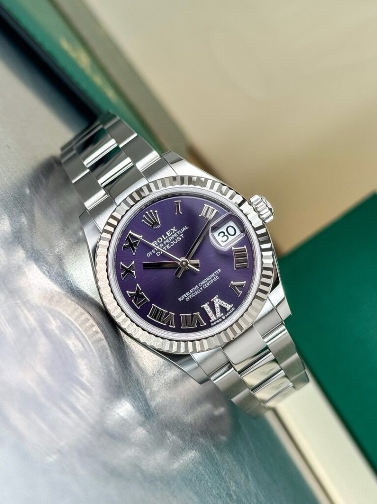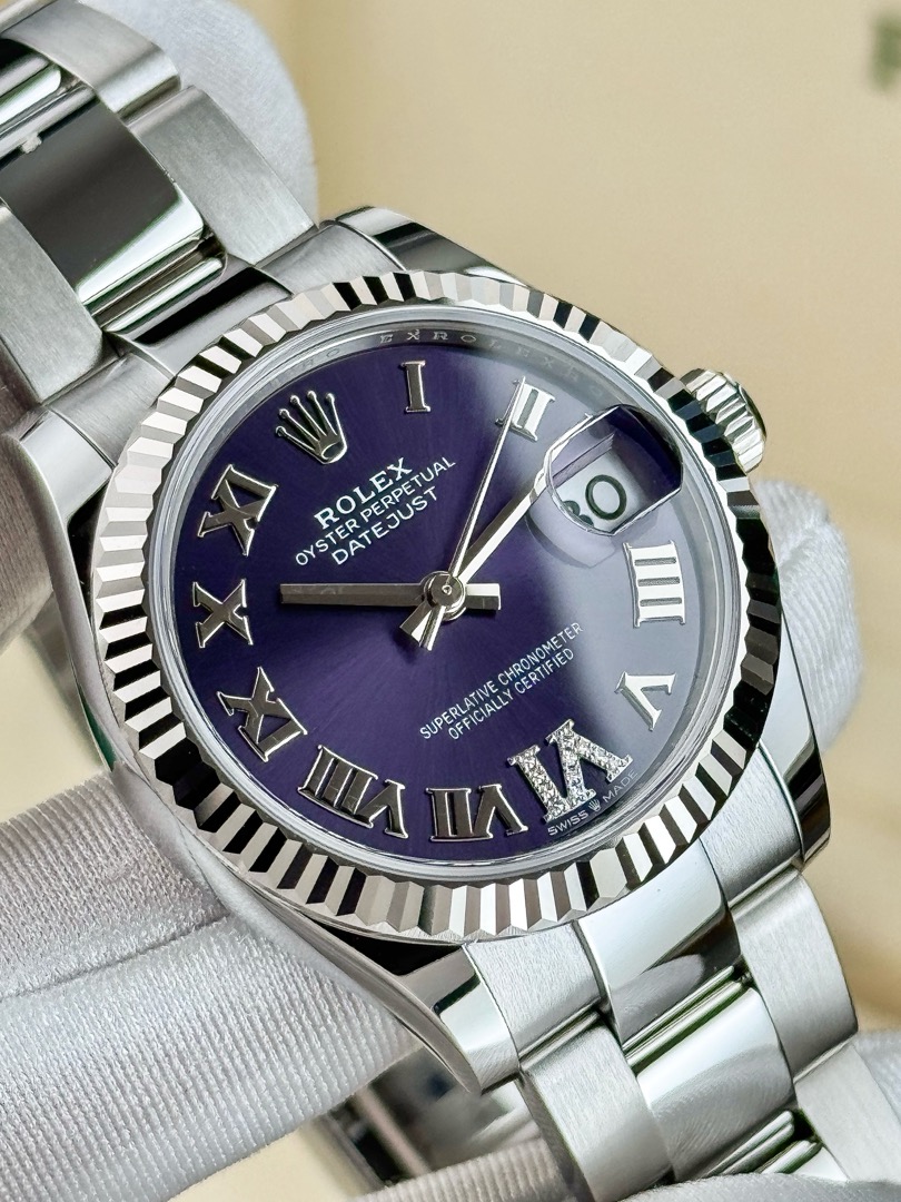 Редкий фиолетовый циферблат, римская цифра 6 украшена бриллиантами