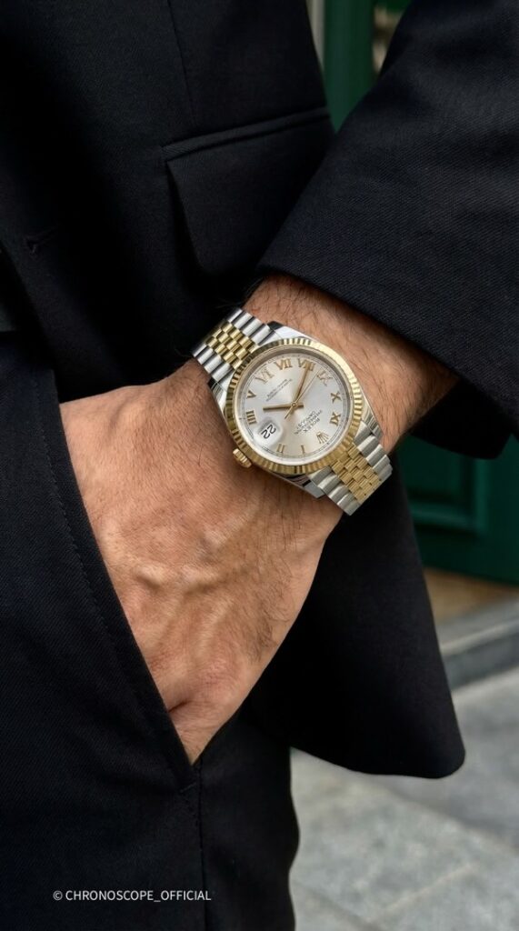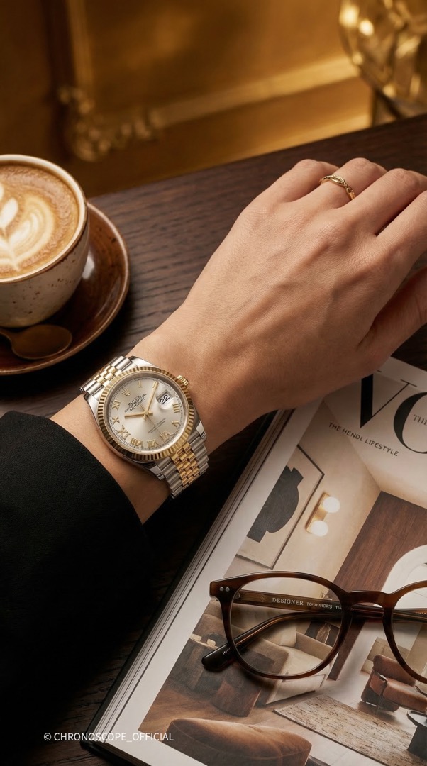 Золото ценится за его блеск и благородство. Сталь олицетворяет собой прочность и надежность. Вместе они образуют очень выгодное сочетание. Биметаллическое исполнение Rolesor, фирменная особенность Rolex, появилось в начале 1930-х годов, а сама торговая марка — в 1933 году. Сегодня это одна из ключевых особенностей коллекции Oyster.