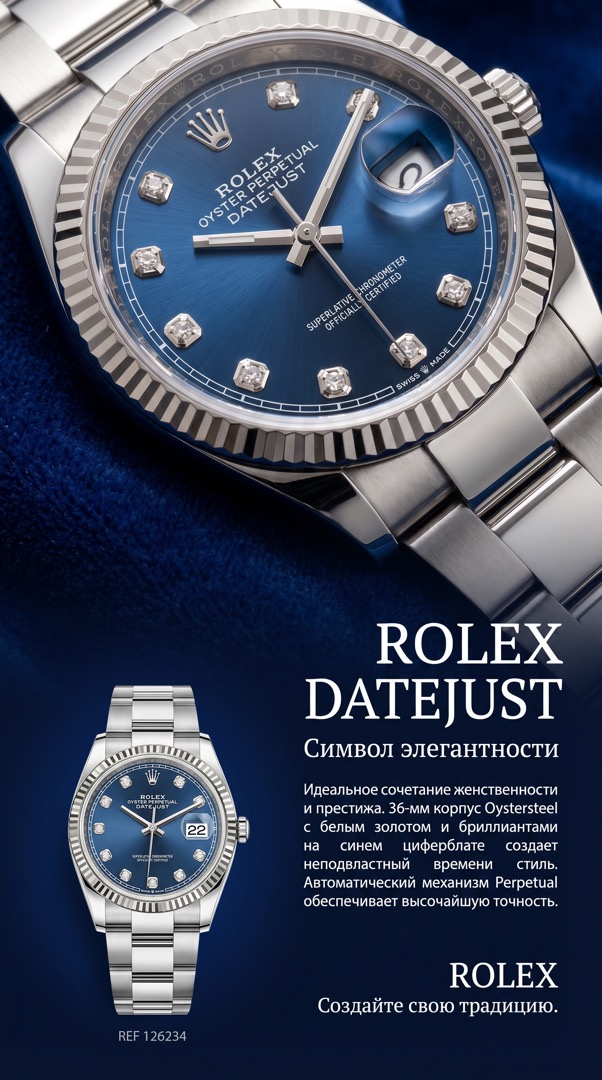 Datejust Rolex Женские часы Золотые часыDatejust 36mm Blue Dial DiamondsЗолото белое 18 К Сталь1 100 000₽