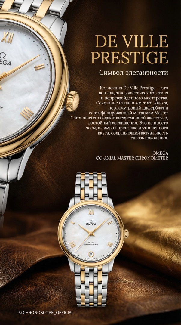 OMEGA до 1 млн. руб. Женские часы Золотые часыDe Ville Prestige Co-Axial Master Chronometer 34mmЗолото 18K Сталь599 000₽
