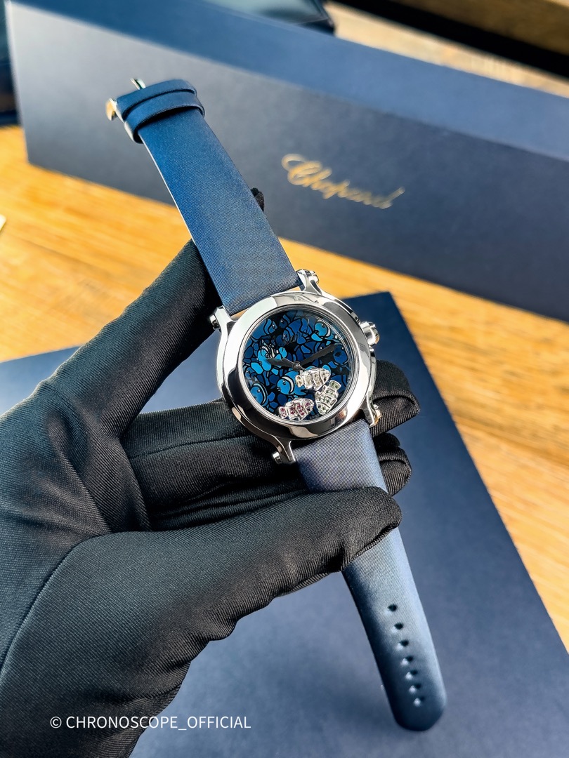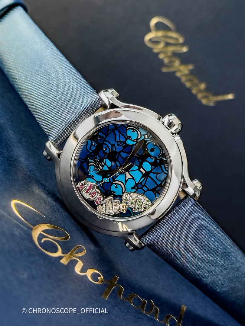 Chopard Happy Diamonds – смелая и инновационная отделка часов. Заметным отличием от всех часов это свободное перемещение бриллиантов по всему циферблату. Подобным образом часы превратились в так называемую «танцевальную» площадку. Мужские швейцарские часы с подвижными бриллиантами заслужили «Золотую розу», награда за оригинальную концепцию дизайна. Данный приз является одним из самых престижных в сфере часового дизайна.
