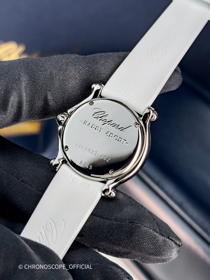 Chopard до 1 млн. руб. до 500 т. руб. Женские часыHAPPY SPORT WHITE 3 DIAMONDS ROUND QUARTZ 36MM 278475-3016Сталь399 000₽