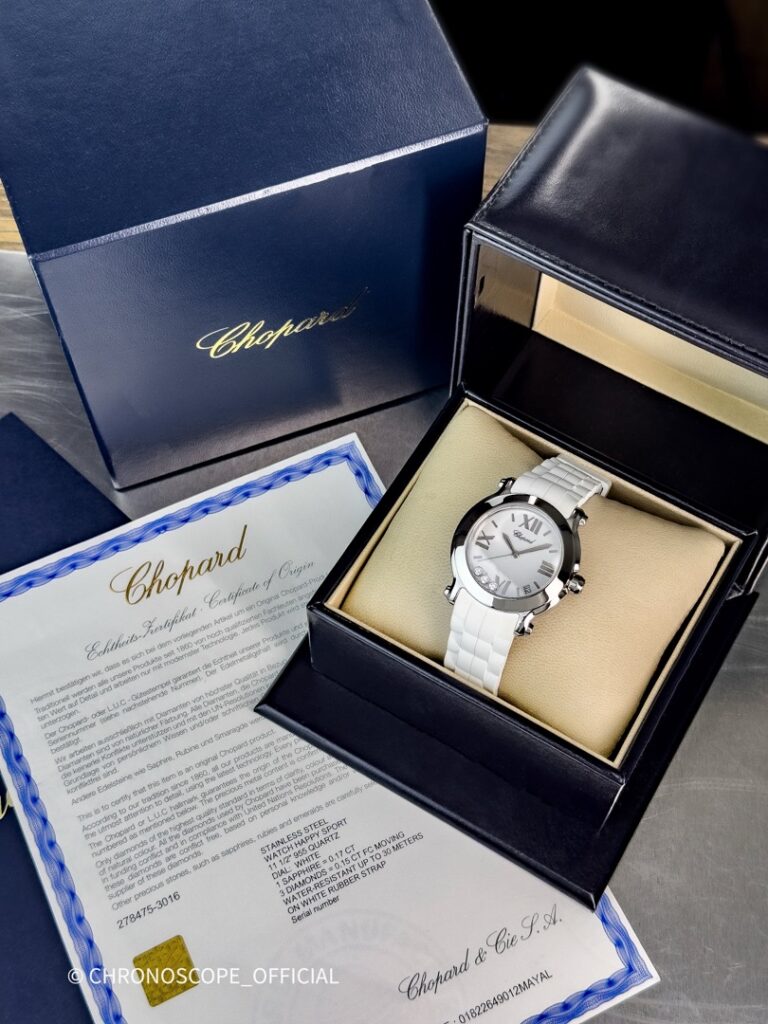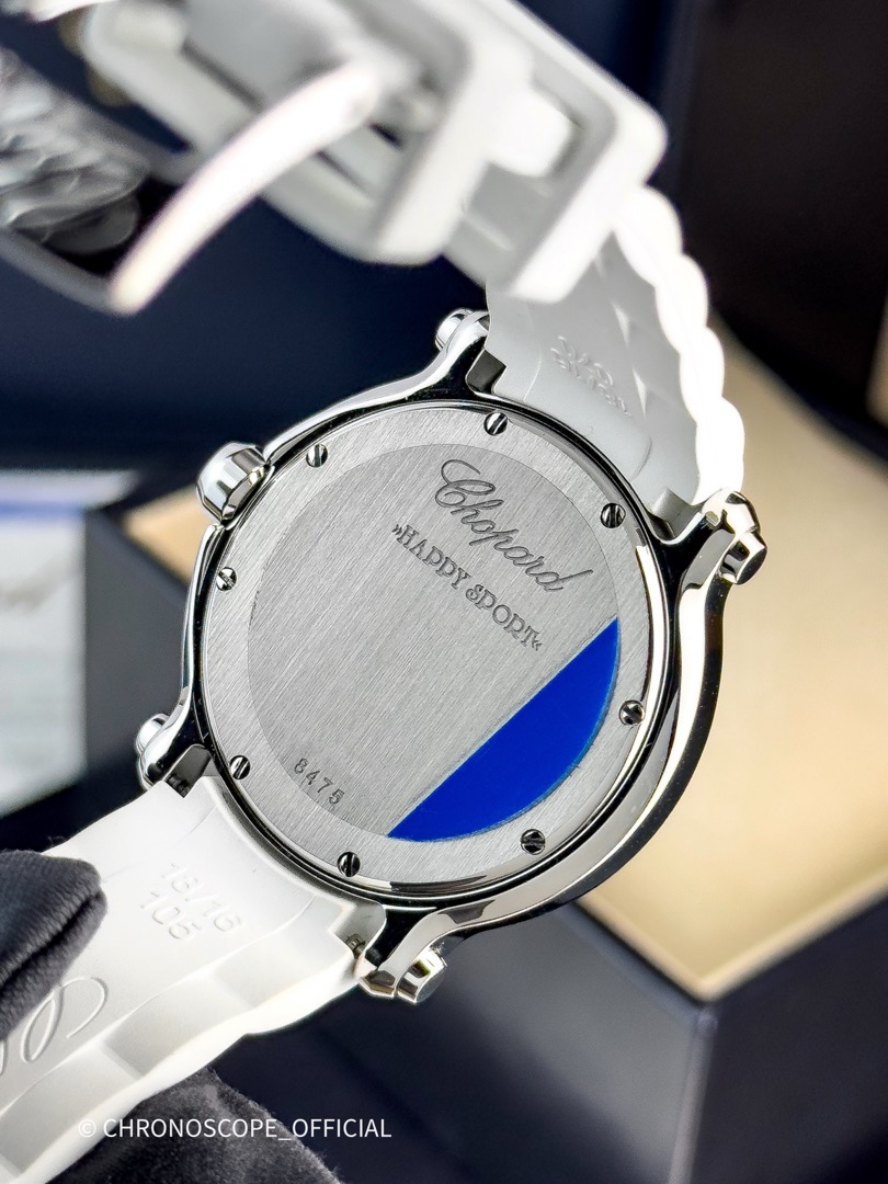 Chopard до 1 млн. руб. до 500 т. руб. Женские часыHAPPY SPORT WHITE 3 DIAMONDS ROUND QUARTZ 36MM 278475-3016СтальПервоначальная цена составляла 399 000₽.380 000₽Текущая цена: 380 000₽.