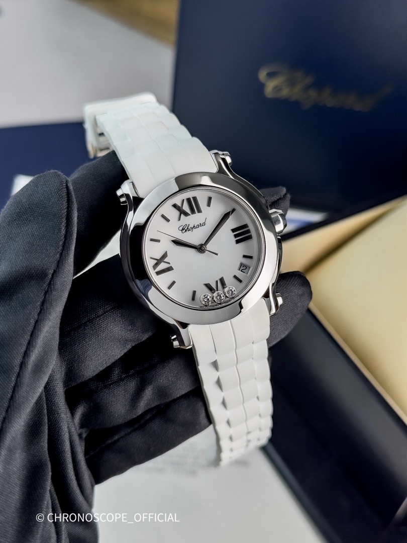 HAPPY SPORT WHITE 3 DIAMONDS ROUND QUARTZ 36MM 278475-3016