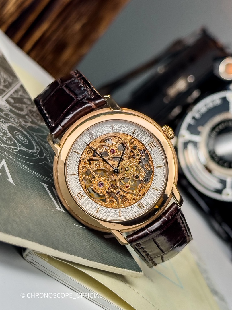 Красивый ультратонкий механизм с ручным заводом выполнены в стиле Скелетон