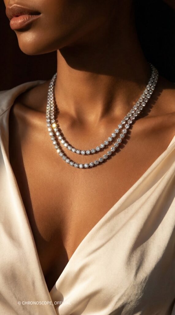 - Чистая геометрия света и безупречный подбор камней. Украшение высокого ювелирного класса, идеально для особых событий, private collection или как инвестиция в вечную ценность.