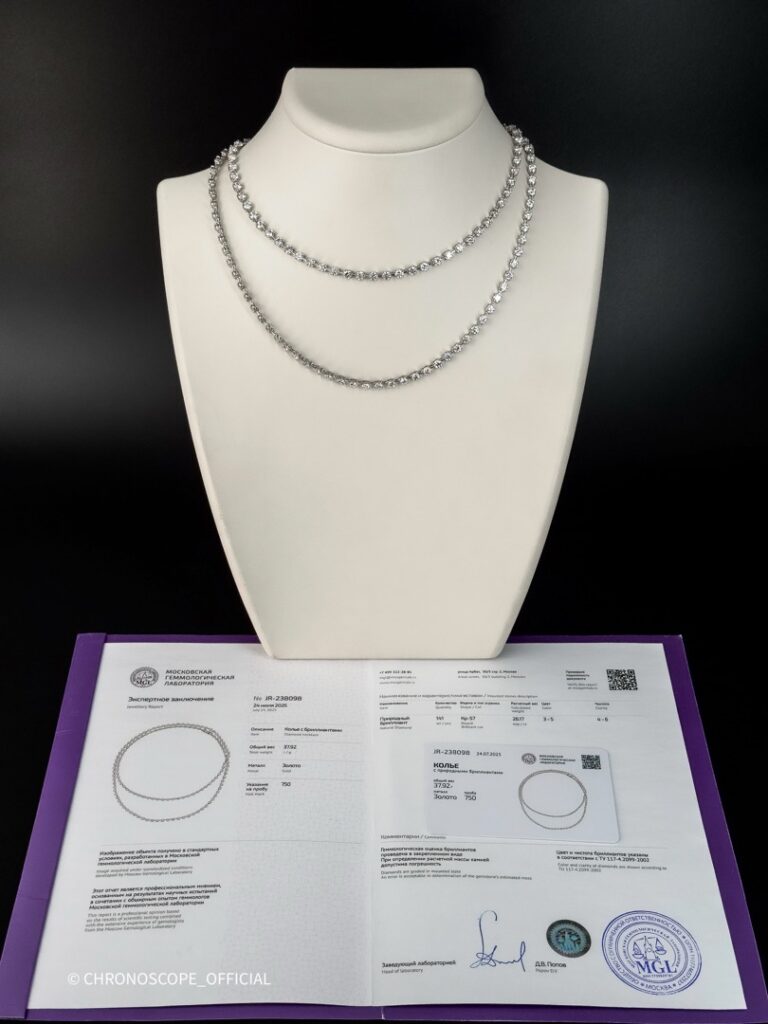 - Колье выполнено из белого золота 750 пробы