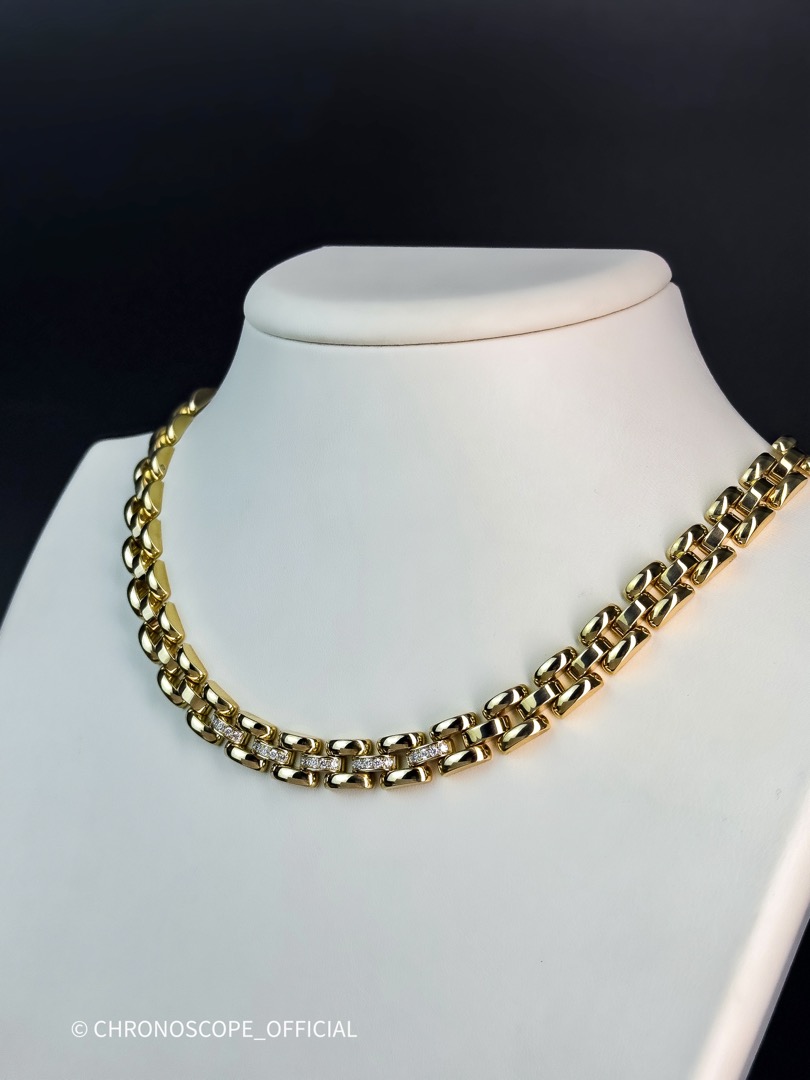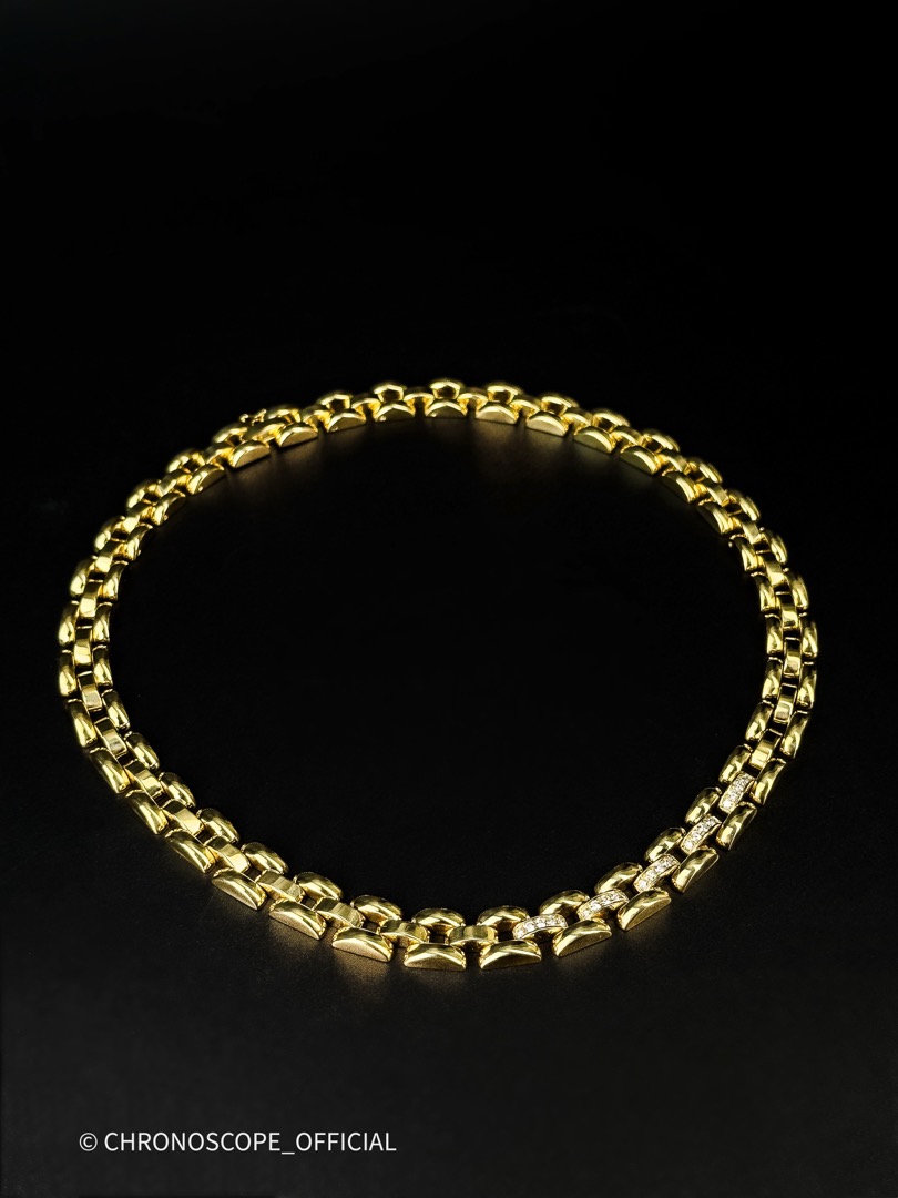 - Выполненное из сияющего желтого золота 750/000 пробы (18 карат), колье «La Strada» пленяет своим изысканным дизайном и безупречным исполнением.