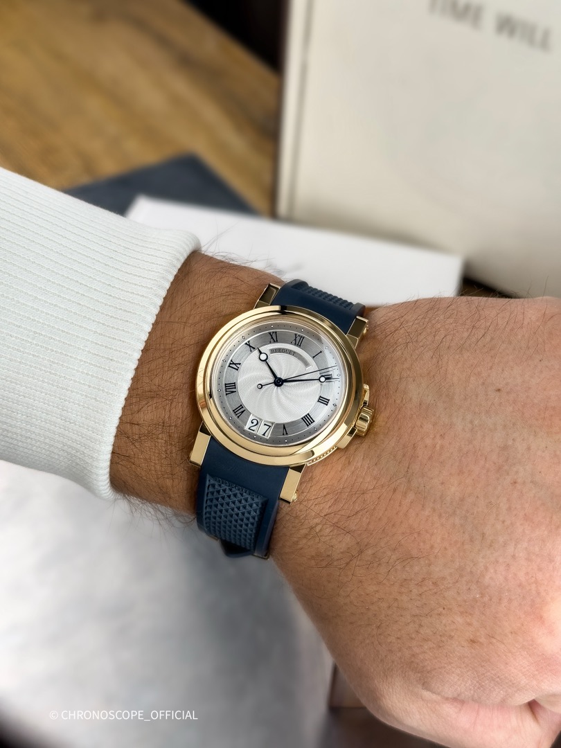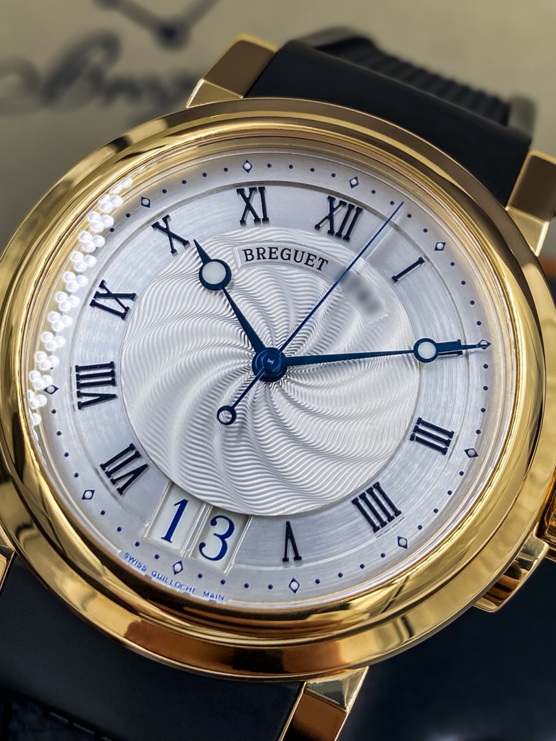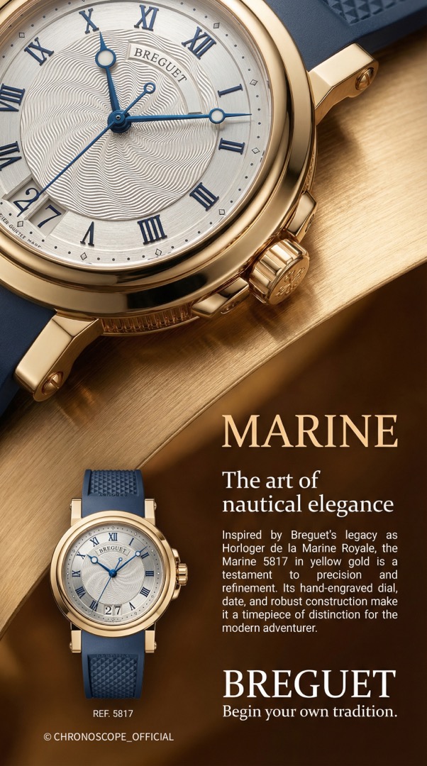 Линия Marine воплощает традиционные ценности часового дела, которые получили новую интерпретацию благодаря мастерам Breguet, создавшим более современные, более молодежные и удобные часы. Линия Marine, прямая наследница часов, разработанных А Л. Бреге для Королевского Флота, отвечает всем требованиям сегодняшнего дня