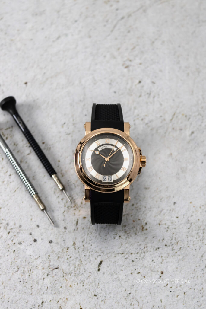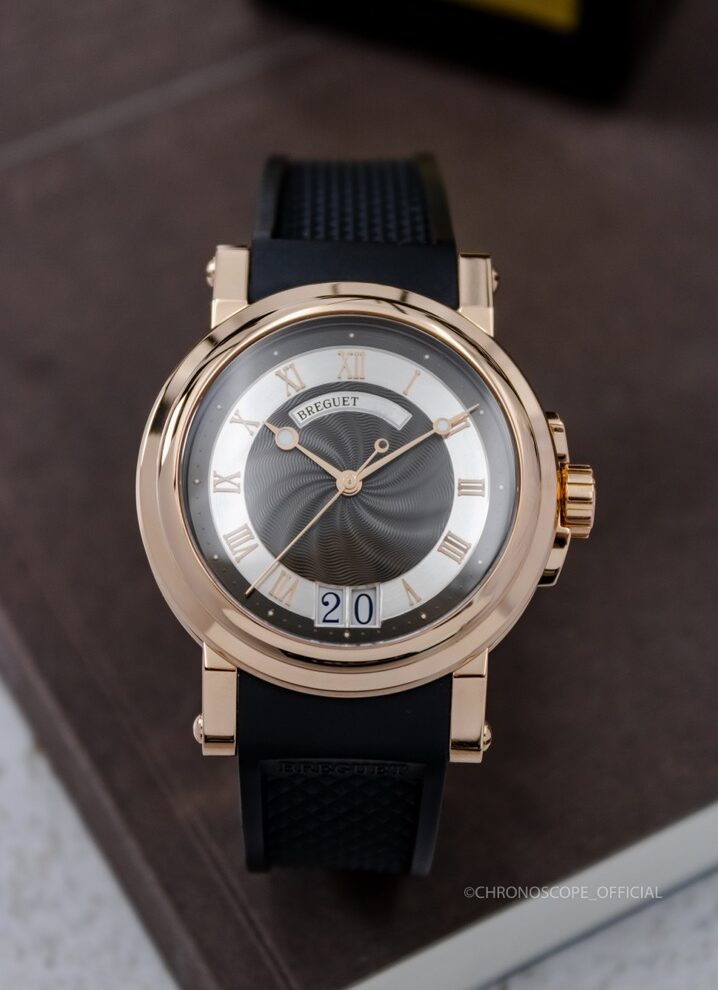 Линия Marine воплощает традиционные ценности часового дела, которые получили новую интерпретацию благодаря мастерам Breguet, создавшим более современные, более молодежные и удобные часы. Линия Marine, прямая наследница часов, разработанных А Л. Бреге для Королевского Флота, отвечает всем требованиям сегодняшнего дня