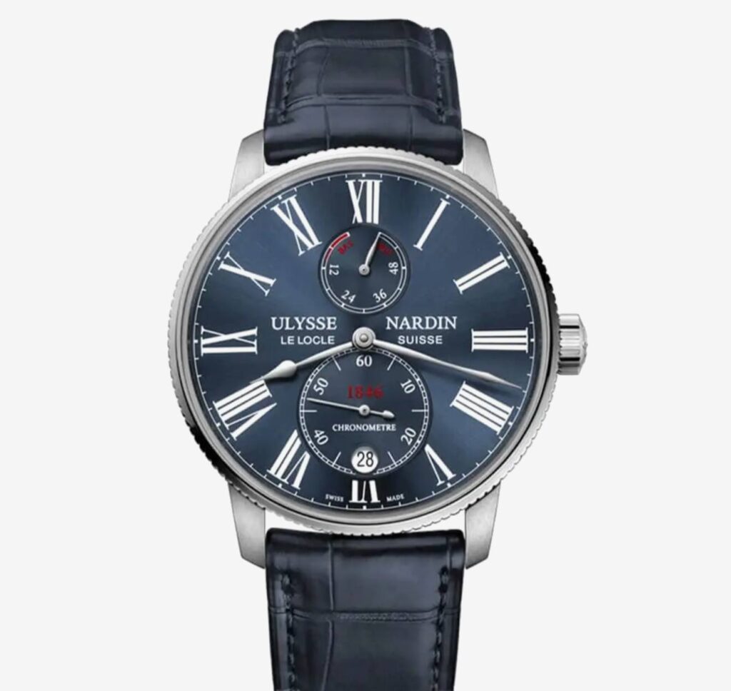 Повседневные мужские наручные часы коллекции Marine Chronometer швейцарской часовой мануфактуры Ulysse Nardin для любителей изысканной классики. Модель оснащена долговечным корпусом из нержавеющей стали в сочетании с элегантным ремешком из натуральной кожи. Встроенный индикатор запаса хода подскажет, когда будет необходимо снова завести часы, а прочное сапфировое стекло защитит циферблат от царапин.