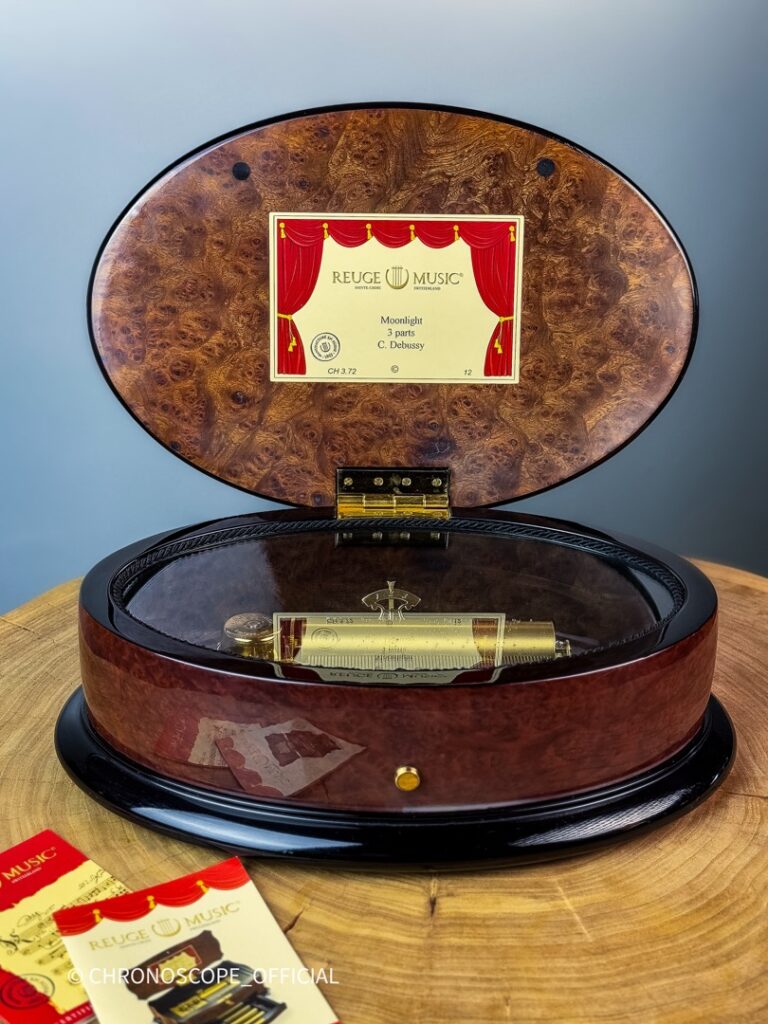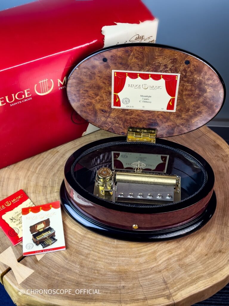 Reuge Music — это компания, которая бережно хранит традиции швейцарского часового и музыкального мастерства, при этом постоянно внедряя инновационные технологии и дизайнерские решения. Каждая музыкальная шкатулка Reuge Music это уникальное произведение, созданное с любовью и вниманием к деталям, которое будет радовать своих владельцев долгие годы.