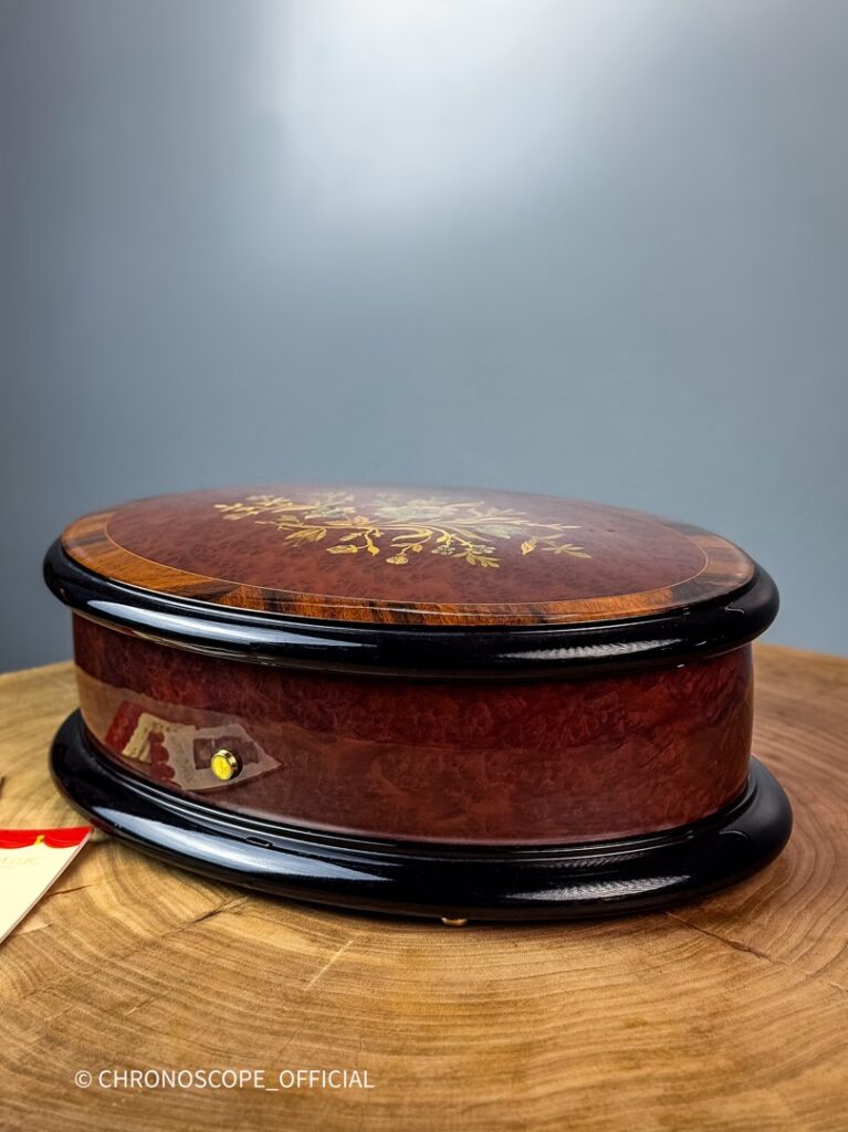 В сердце этой шкатулки бьется механизм на 3 мелодии. «Лунный свет» (Moonlight) Клода Дебюсси, одна из самых узнаваемых и любимых классических композиций, звучит в исполнении Reuge Music особенно проникновенно. Точность и чистота звука, достигаемые благодаря кропотливой работе мастеров, позволяют в полной мере насладиться красотой и глубиной музыкального произведения. Мелодия бережно извлекается из вращающегося цилиндра с помощью искусно настроенных зубцов, создавая гармоничное и богатое звучание.
