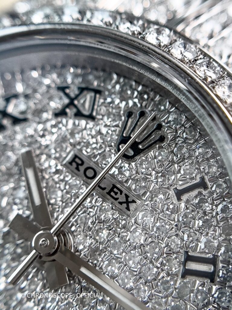 Классическая женская модель часов Rolex в стальном корпусе дополнительно инкрустированном бриллиантами