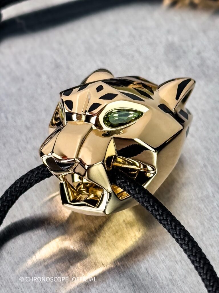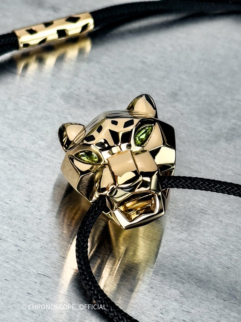 - Пантера, издавна являющаяся эмблемой Cartier, предстает здесь в ослепительном исполнении из 18-каратного желтого золота. Ее гибкое тело, плавно изгибающееся в движении, передает ощущение энергии и готовности к прыжку. Искусно выполненные детали подчеркивают мускулатуру зверя, а лаконичность дизайна акцентирует его природную красоту.