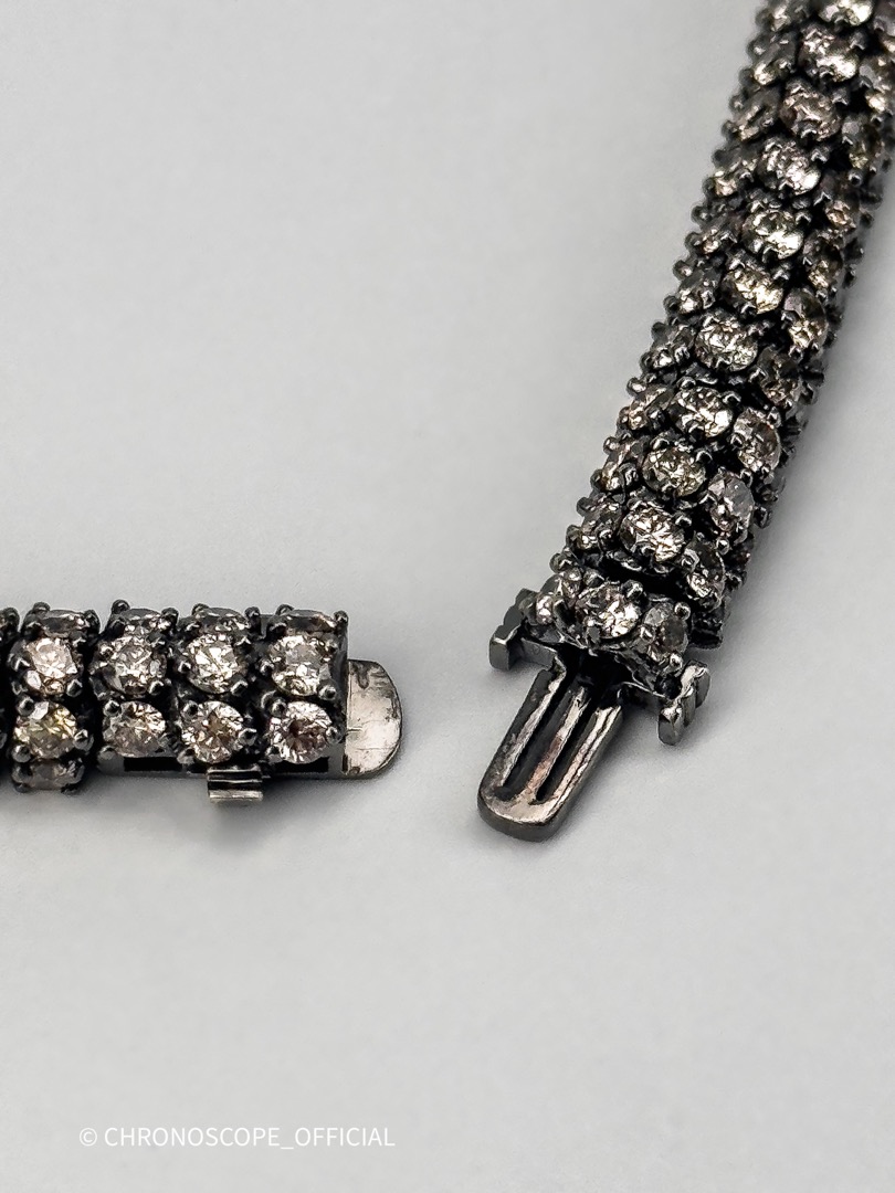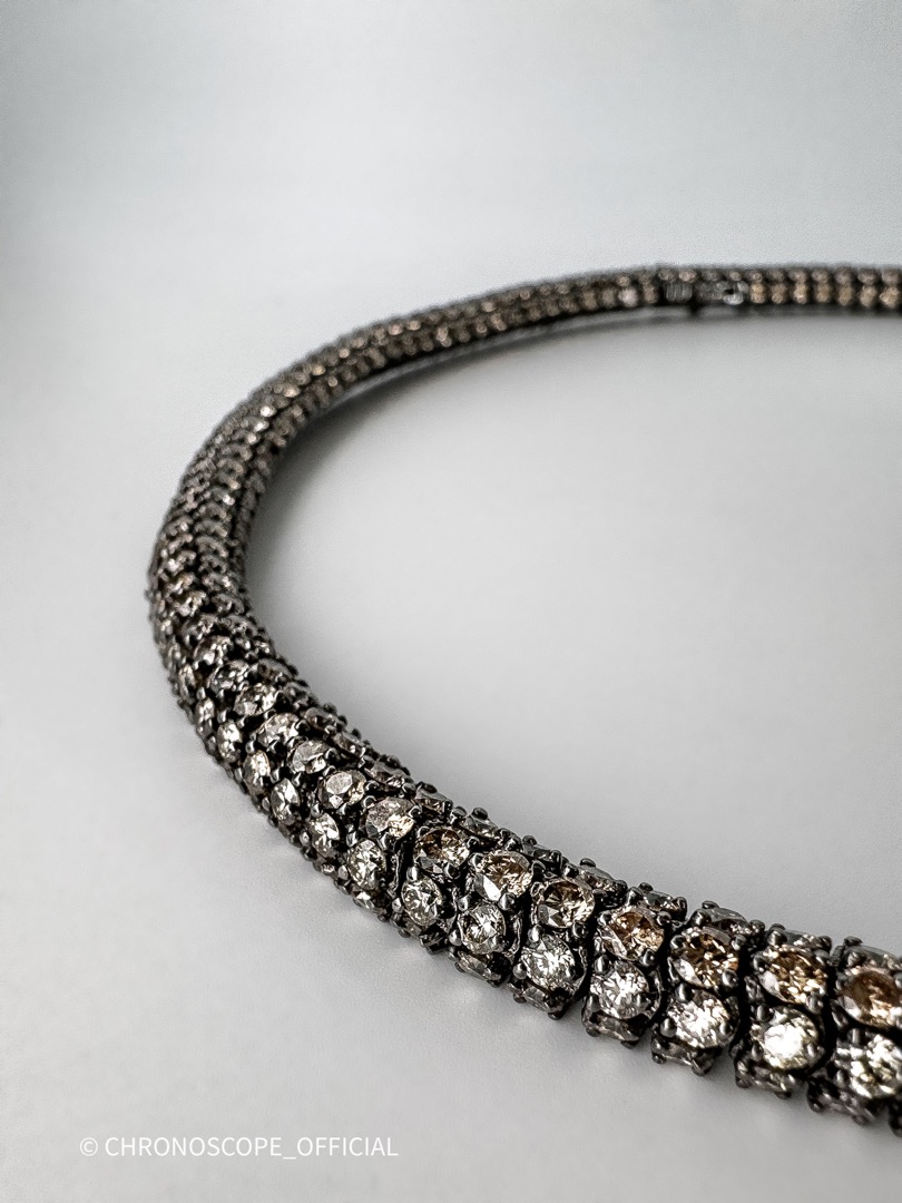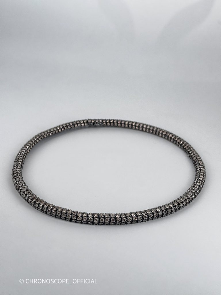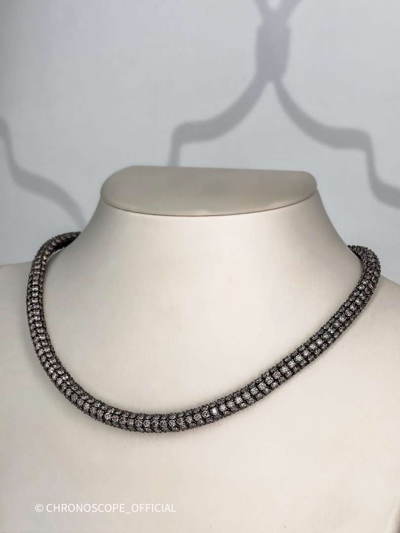 - Колье, выполненное из золота 750 пробы, длиной 40 см – это ювелирный шедевр, усыпанный 32 каратами бриллиантов станет великолепным дополнением к вашему образу, подчеркивая безупречный вкус и статус.