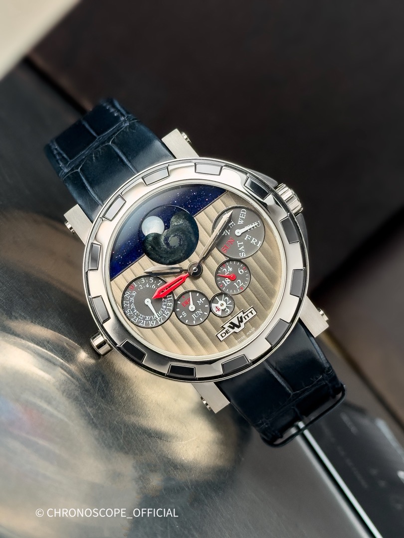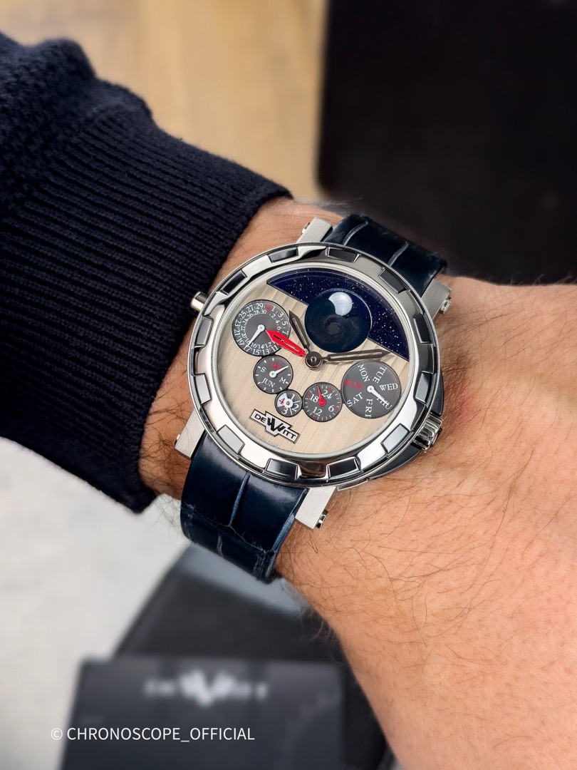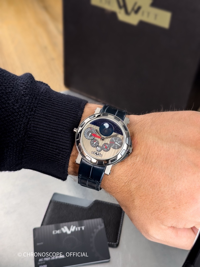 Dewitt Золотые часы Мужские часыQuantime Perpetual GMT NebulaЗолото белое 750 пробы Керамика ТитанПервоначальная цена составляла 1 700 000₽.1 690 000₽Текущая цена: 1 690 000₽.