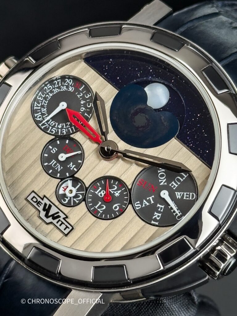 Серый "Cotes de Geneve" с серебристым из Белого золота, Туманность из кремния, Лунный диск из материала Goldfluss, Луна из белого перламутра