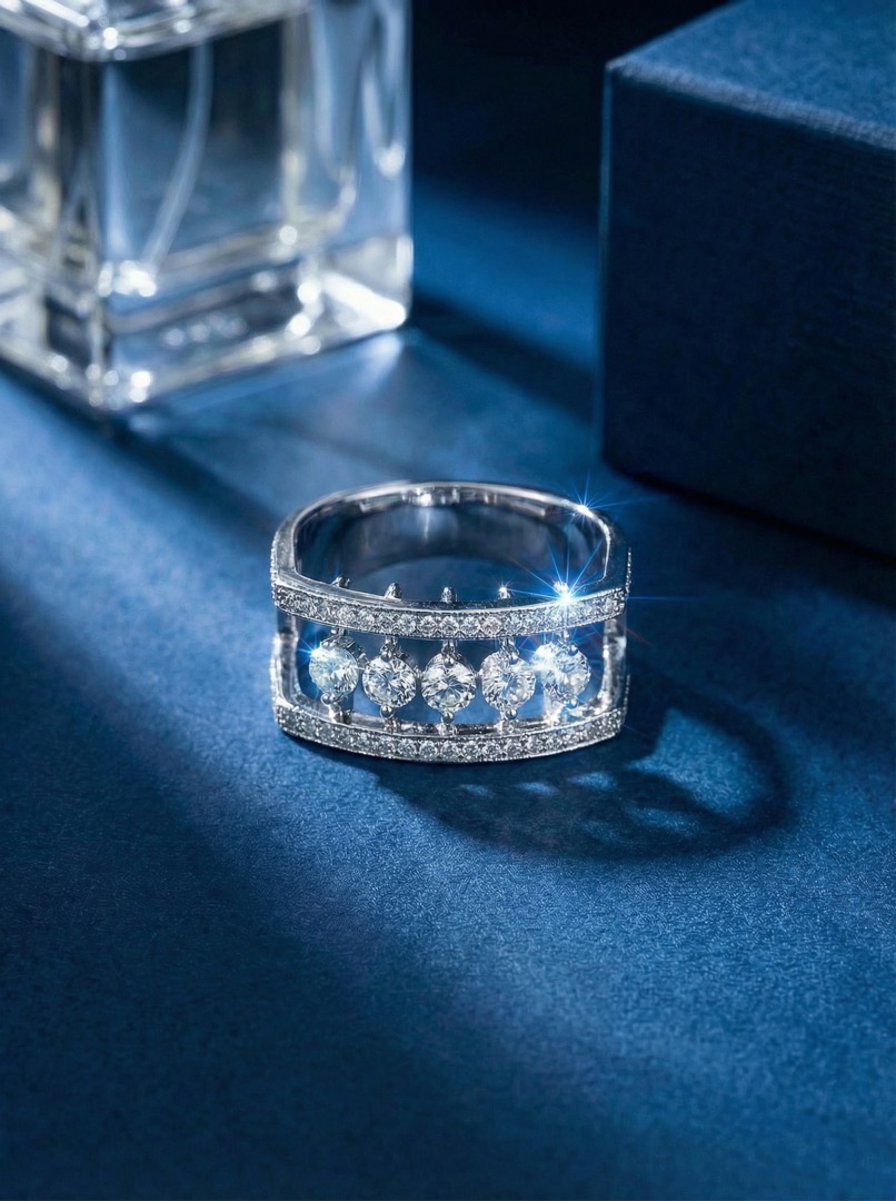 - Кольцо украшено 52 лабораторно выращенными алмазами общим весом 0,31 Ct, цвет 3-4/5-6, чистотой F-I/ VS2-71