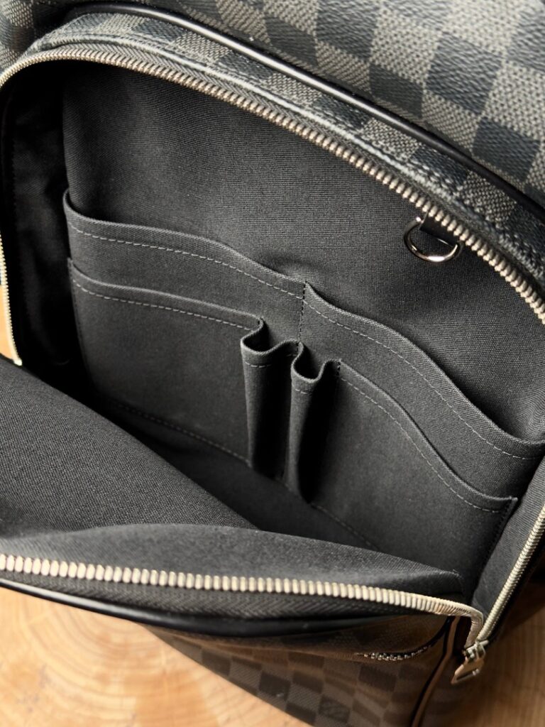 Рюкзак Louis Vuitton Michael — это идеальный баланс между статусом, функциональностью и современным городским стилем. Выполненный из фирменной канвы Damier Graphite с отделкой из гладкой чёрной кожи, он подчёркивает сдержанную элегантность и безупречный вкус владельца.