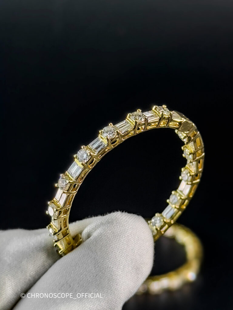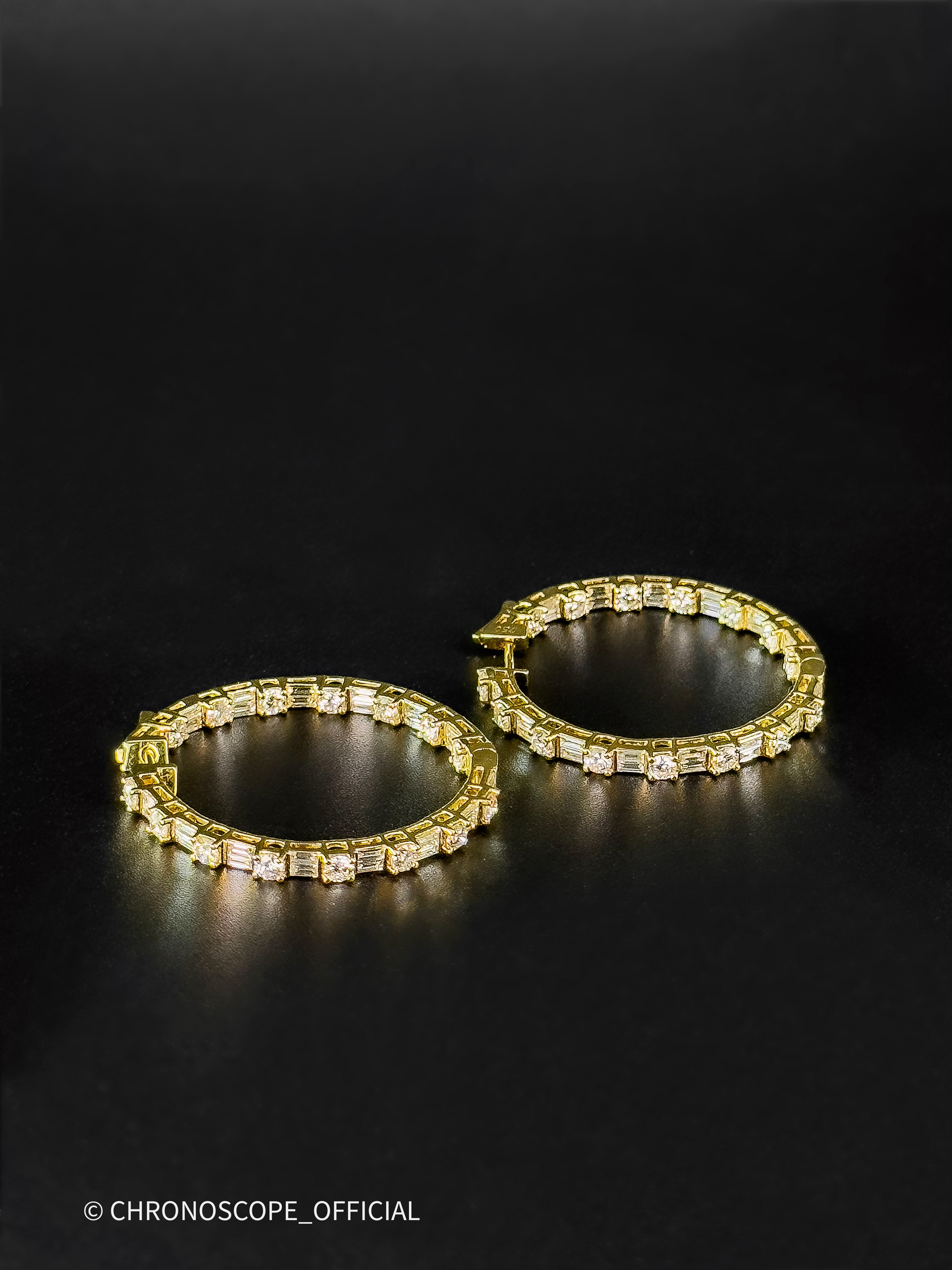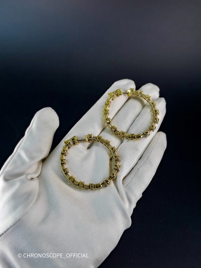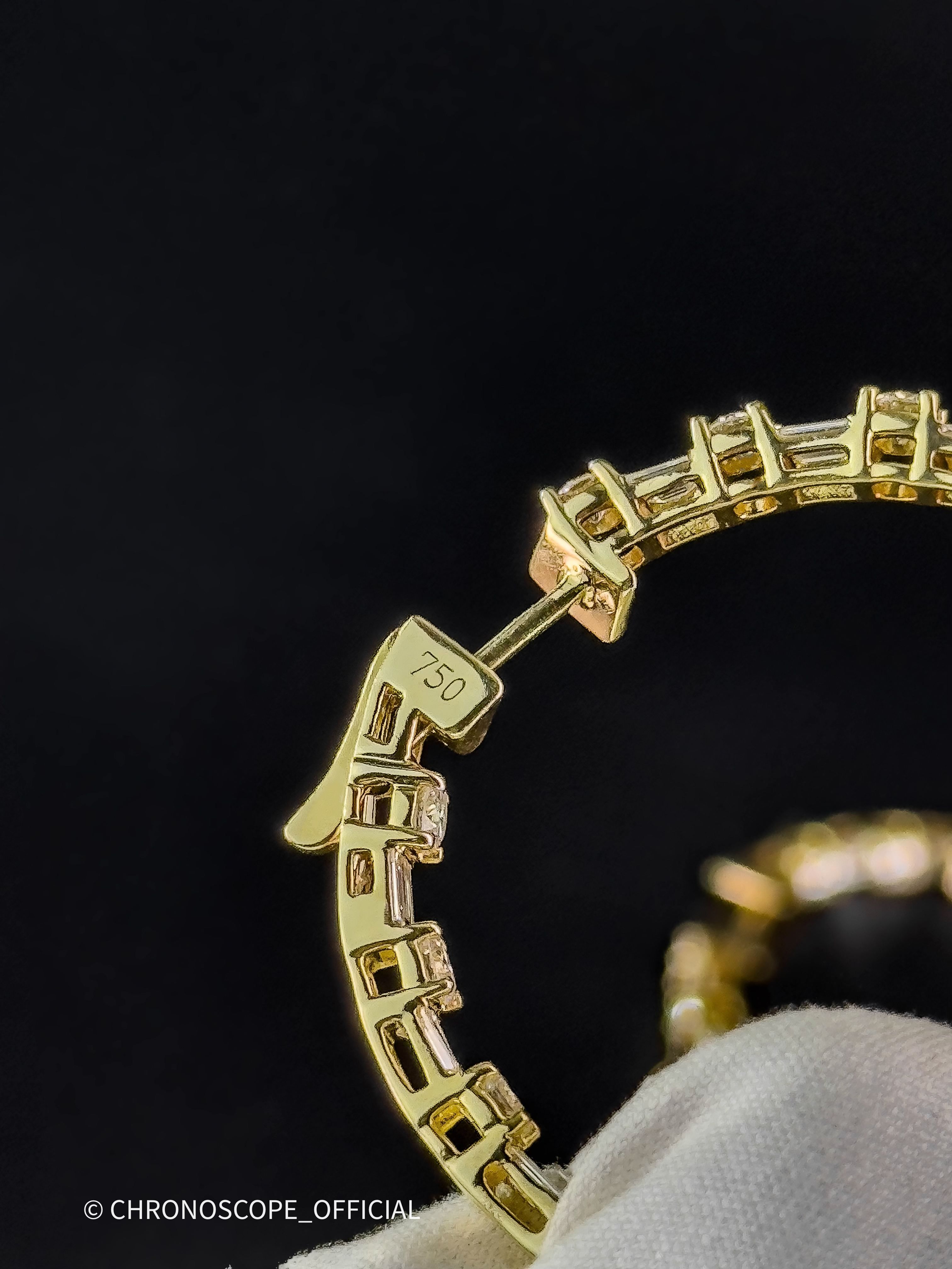 - Они изготовлены из желтого золота 750 пробы, известного своей долговечностью и благородным оттенком. Желтое золото идеально гармонирует с блеском бриллиантов, создавая теплую и притягательную композицию.