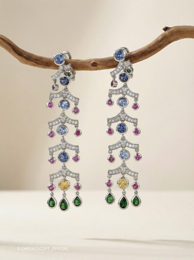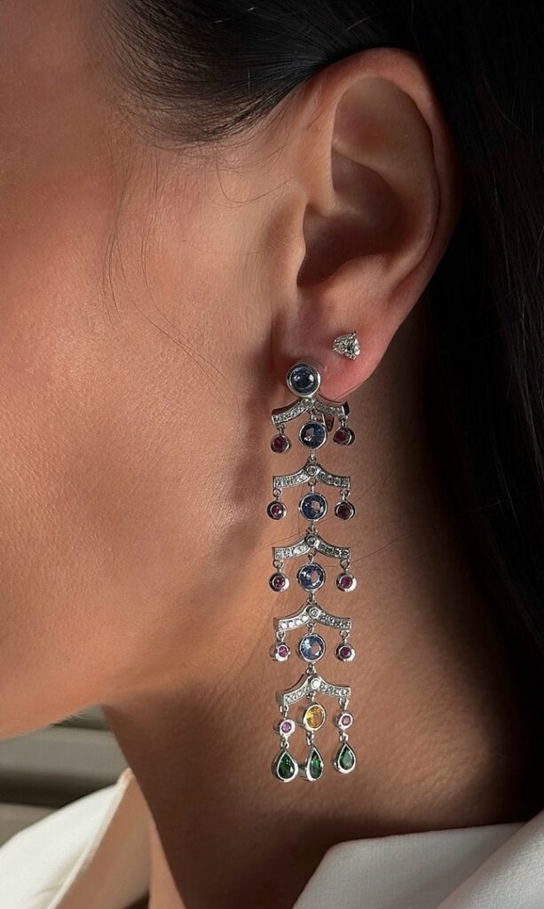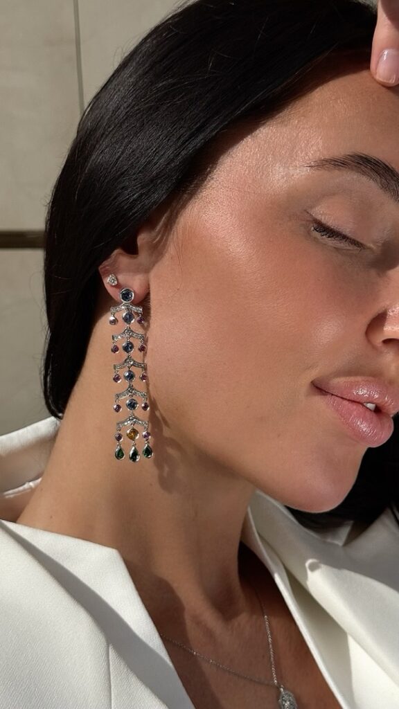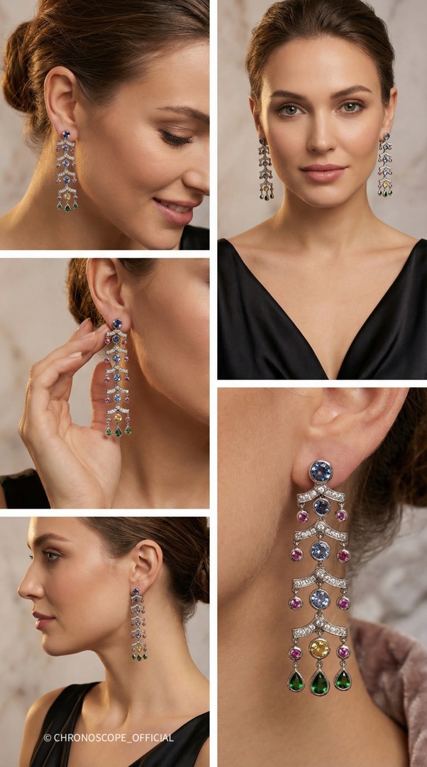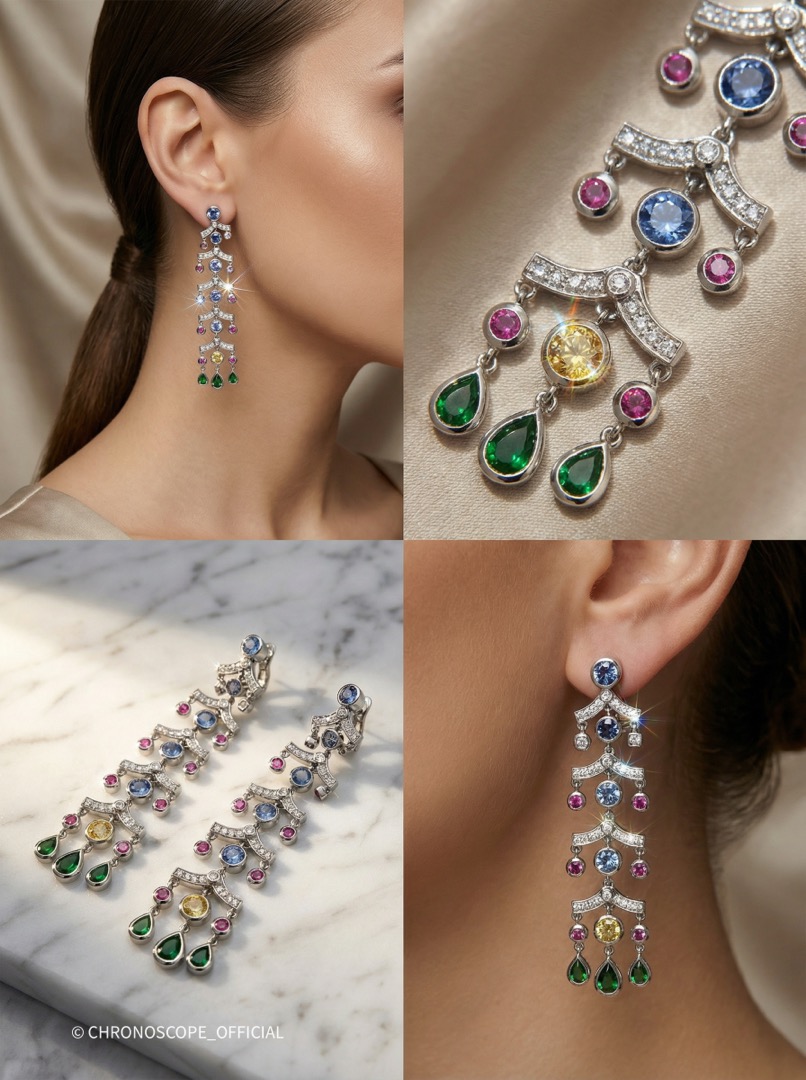 - Вставки: 10 топазов, 2 цитрина, 6 хромдиопсид