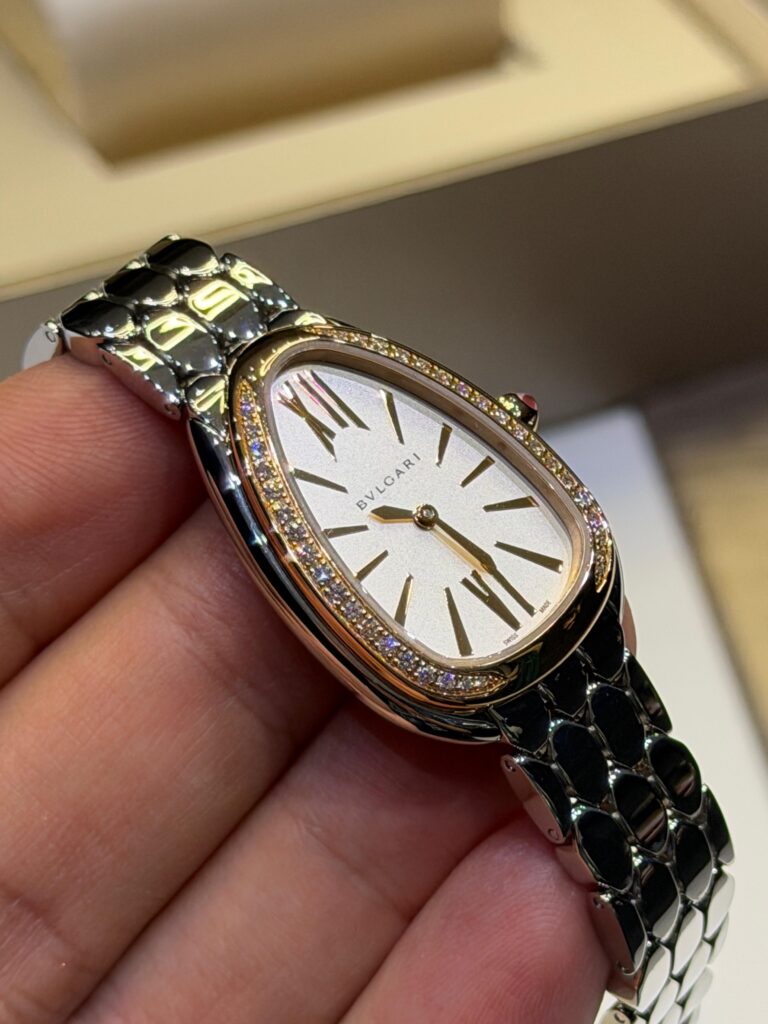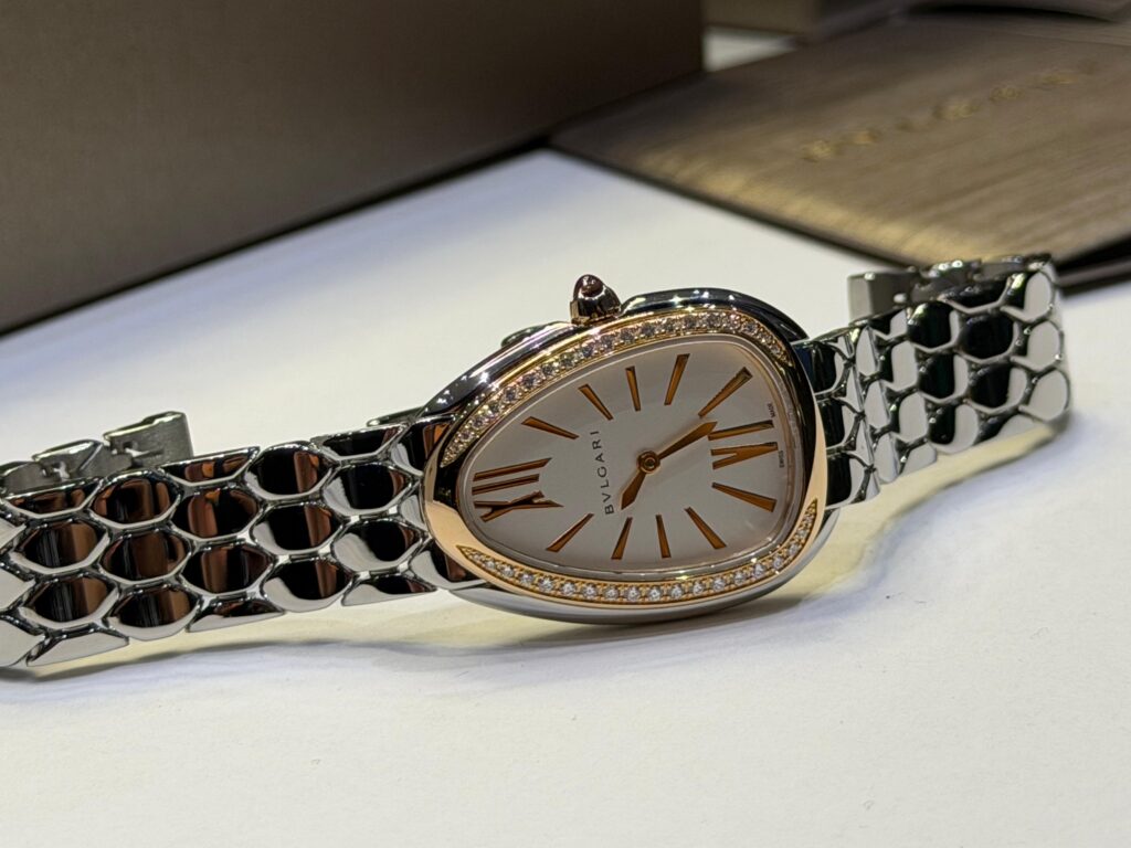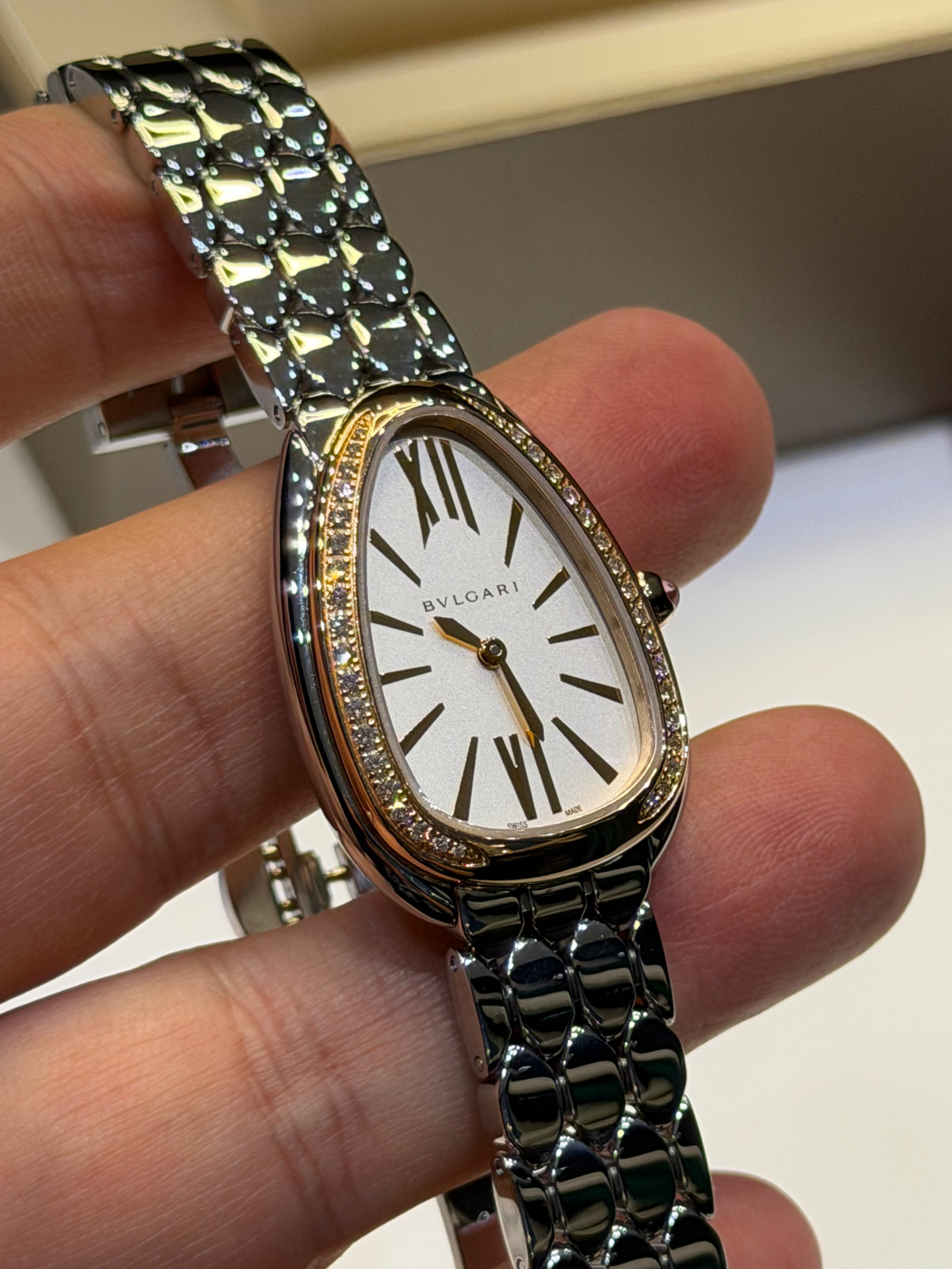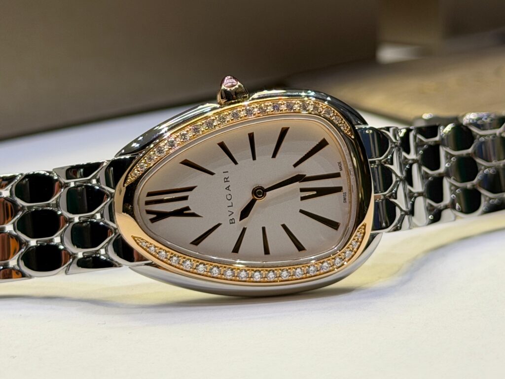 Легендарная модель Bvlgari предстает в новом, неоспоримо притягательном облике. Корпус узнаваемой каплевидной формы становится еще тоньше.