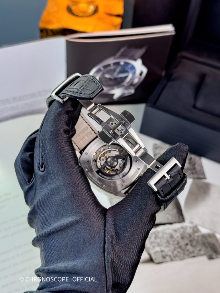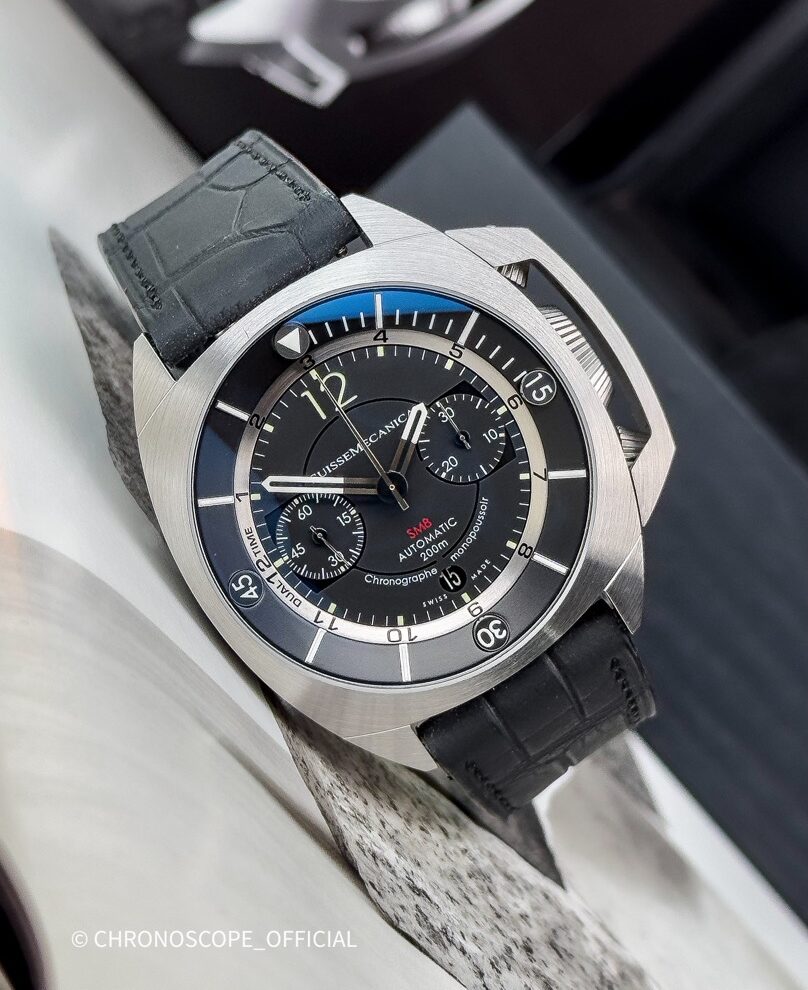 Фундаментальная инновация SUISSEMECANICA SM8 – это эксклюзивная, патентованная система защиты от ударов, которая выполнена в виде очень точно интегрированной скобы которая скользит в двух направлениях: вверх или вниз относительно корпуса. Эта система отличается удивительной прочностью , что делает ее очень удобной в использовании. Запатентованная система SCPSy (Sliding Crowns Protector System) защищает заводную головку и кнопки управления от ударов, обеспечивая их бесперебойную работу.