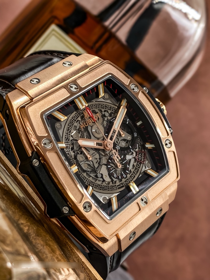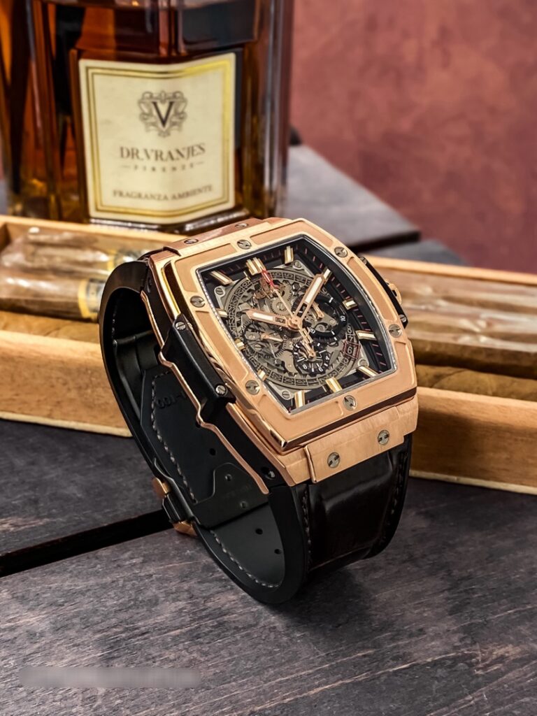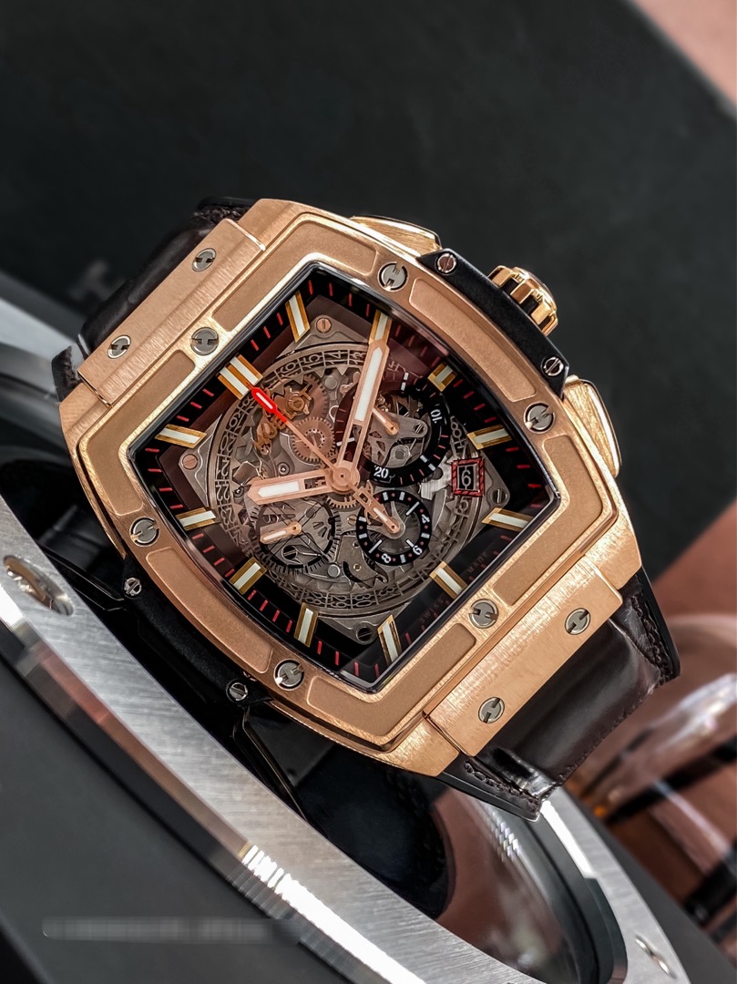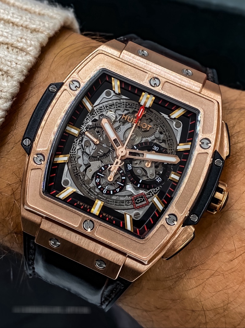 Одна из превосходных новинок Spirit of Big Bang King Gold от Hublot представляет часы BIG BANG с корпусом в форме бочонка из розового золота. Они не случайно носят название Spirit of Big Bang. Эта модель представляет собой квинтэссенцию линии BIG BANG.
