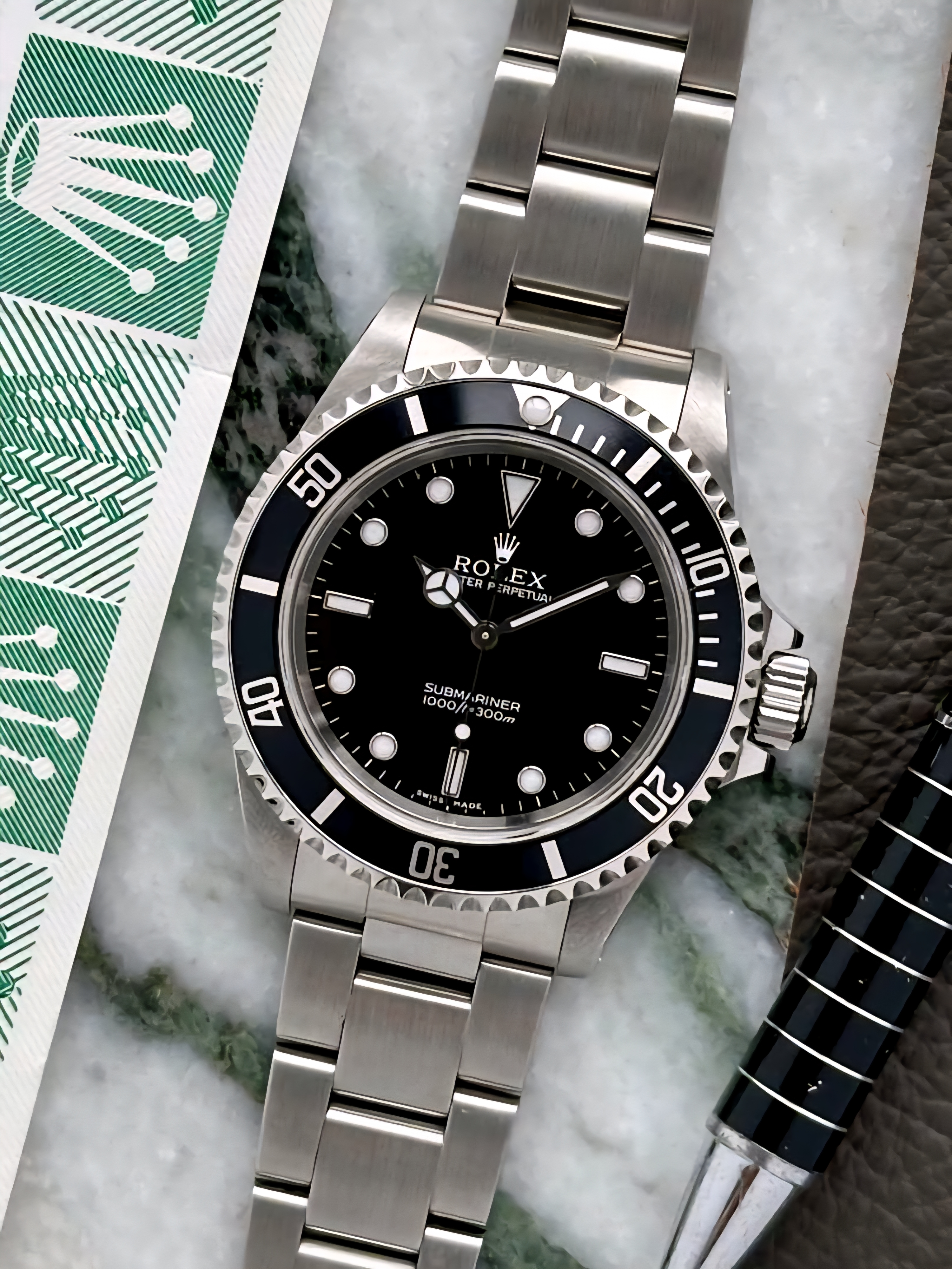 Часы Rolex Submariner No Date 14060 — это классический и легендарный дайверский аксессуар, отличающийся минимализмом и высокой функциональностью. Они оснащены знаменитым механизмом Rolex 3000, который обеспечивает надежность, точность и долговечность. Этот механизм славится своей простотой и эффективностью, идеально подходя для морских приключений. Корпус из нержавеющей стали, водонепроницаемость до 300 метров и безотказный дизайн делают эти часы непревзойденным выбором для ценителей качественной классики и профессиональной подводной деятельности.