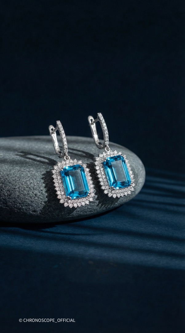 - Белое золото 750-й пробы, благородное сияние бриллиантов и выразительная красота голубых топазов делают этот комплект по-настоящему статусным украшением.