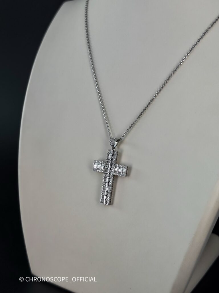 - Центральным элементом крестика являются бриллианты общим весом более 3 карат с характеристиками 4/4. Безупречная огранка камней позволяет максимально раскрыть их природный блеск и игру света, а чистота бриллиантов символизирует непорочность веры, а их сияние – божественный свет, озаряющий жизненный путь.